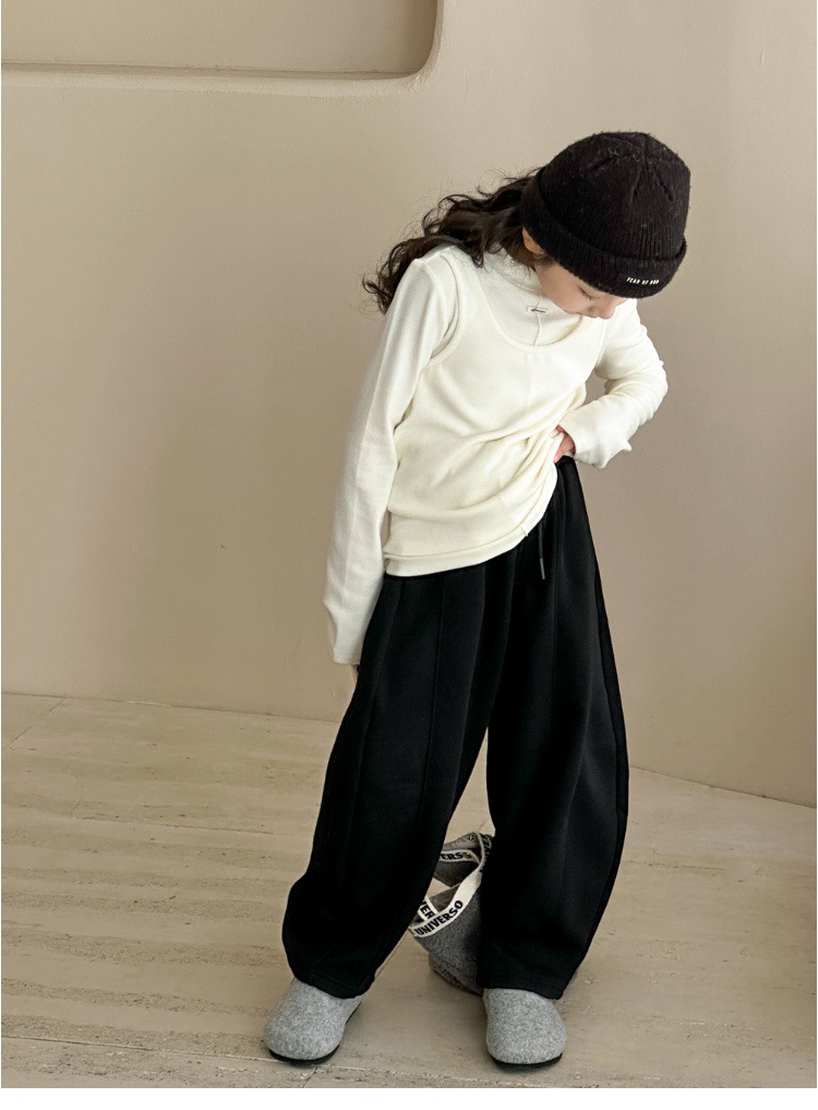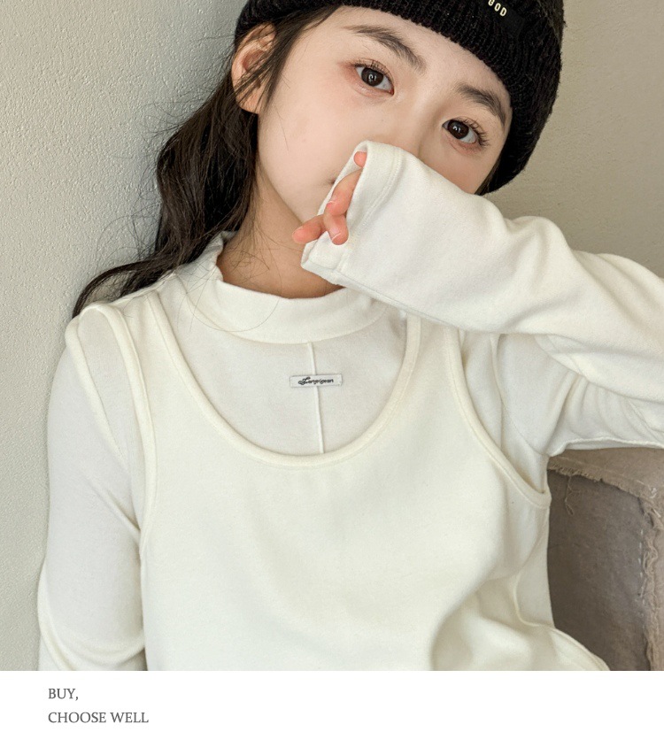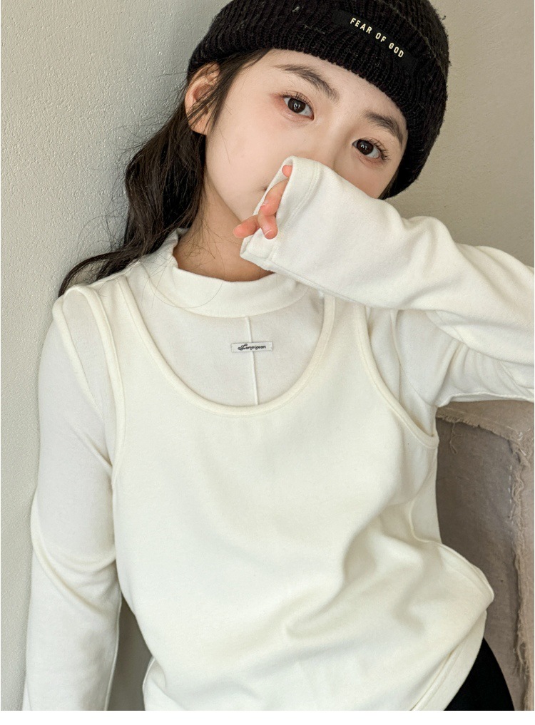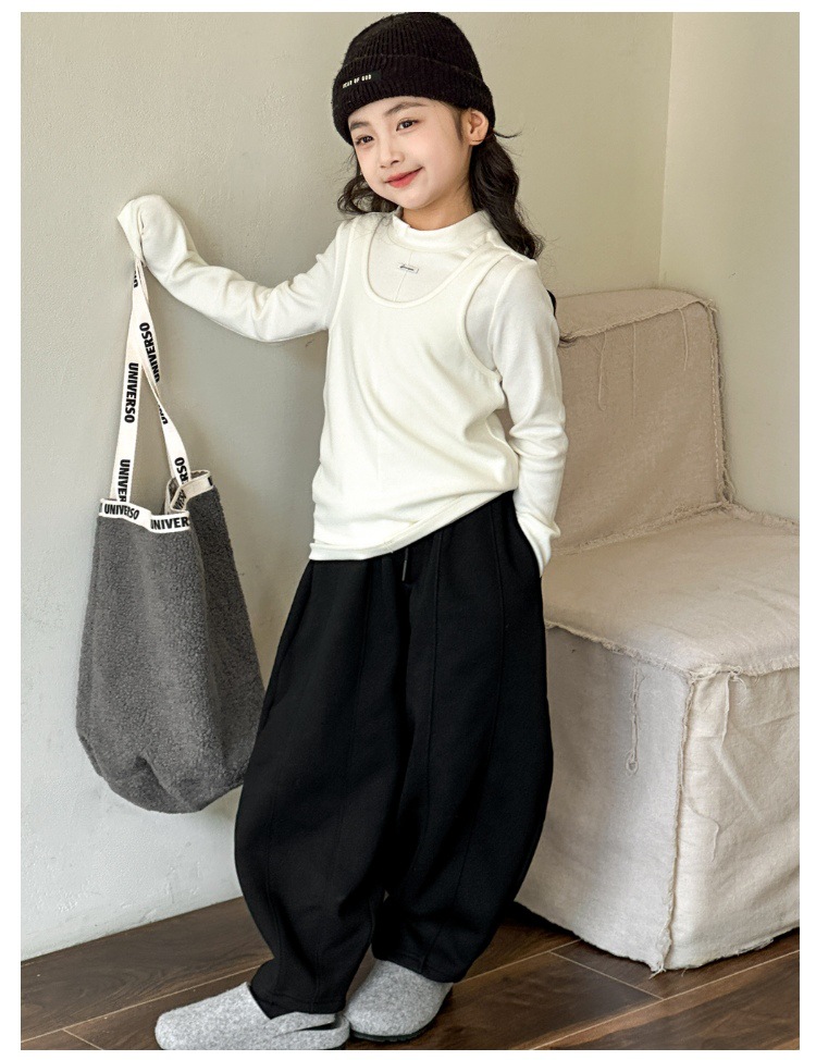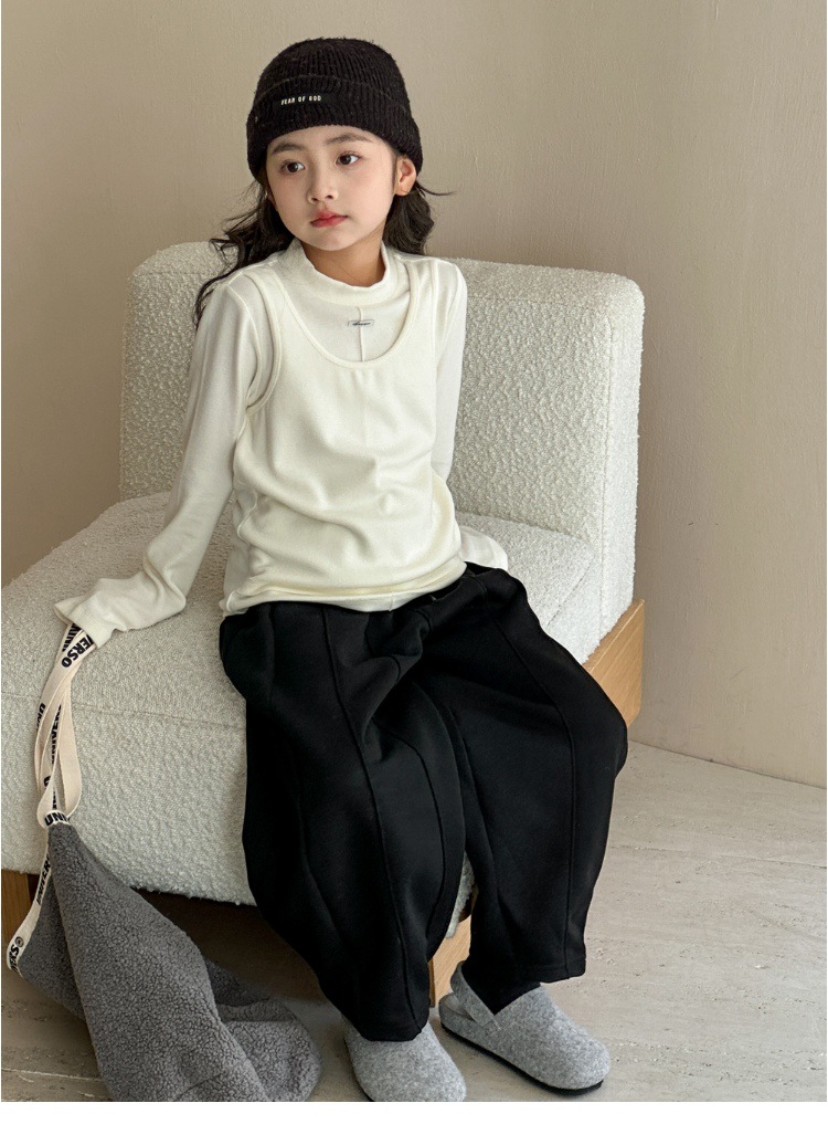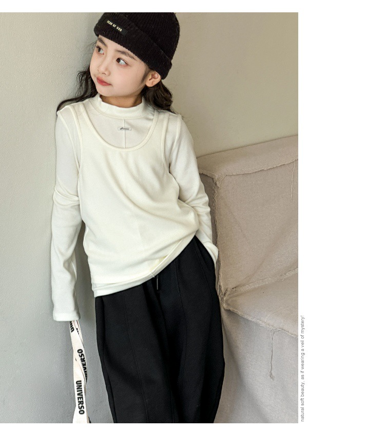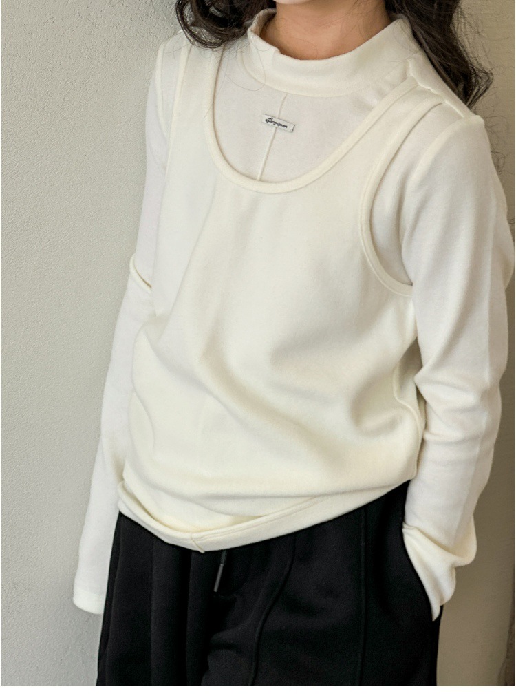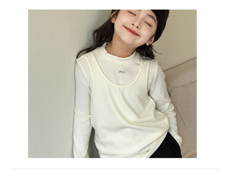 여자 반높이 칼라 벨벳베이스 셔츠 가을과 겨울 어린이 긴팔 티셔츠 겨울소녀 가짜 투피스 내탑스토어 가기