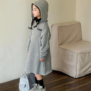 女童连衣裙秋冬款2024新款中大童宽松休闲连帽裙子儿童加绒卫衣裙