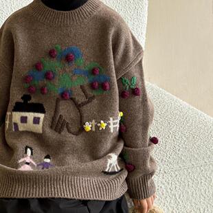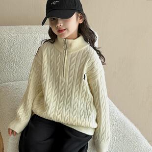 女童毛衣2024秋冬新款加厚儿童针织衫羊毛混纺中大童宽松休闲上衣