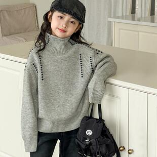 女童毛衣秋冬洋气儿童半高领内搭针织衫冬装中大童羊毛混纺打底衫