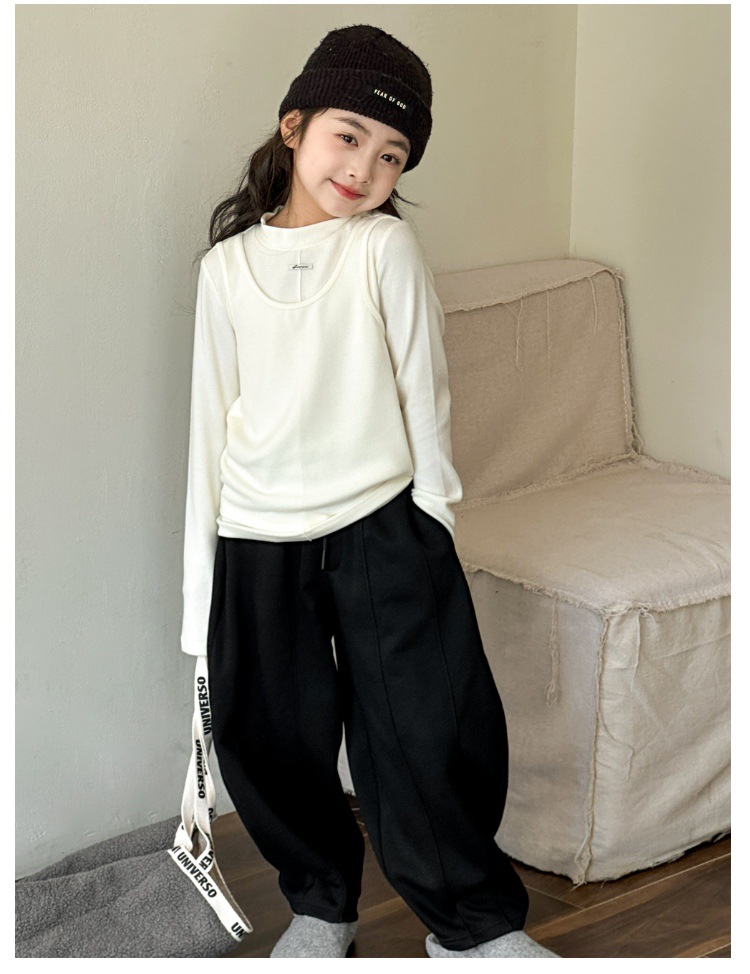 女童打底衫2024新款秋冬儿童假两件半高领T恤中大童休闲弹力上衣
