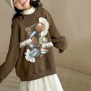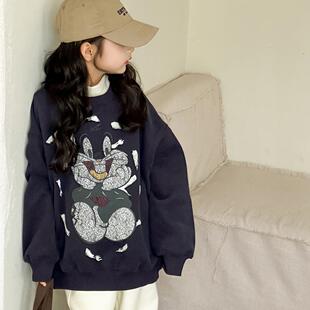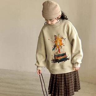 女童加绒卫衣秋冬款2024新款中大童韩国童装印花长袖洋气儿童上衣