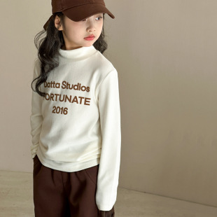 女童德绒打底衫秋冬款儿童半高领长袖t恤中大童韩版印花保暖上衣