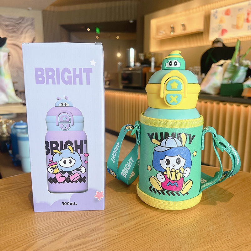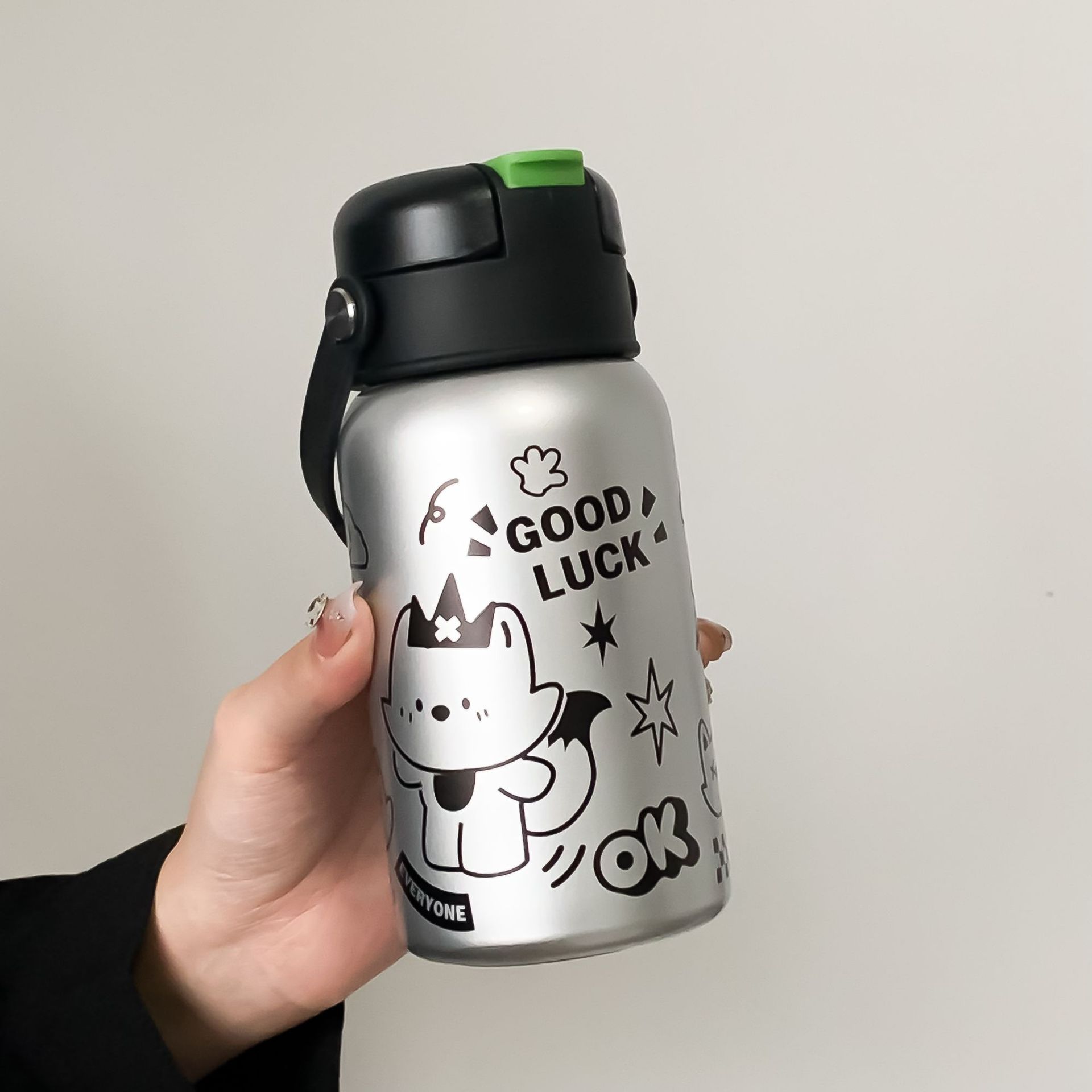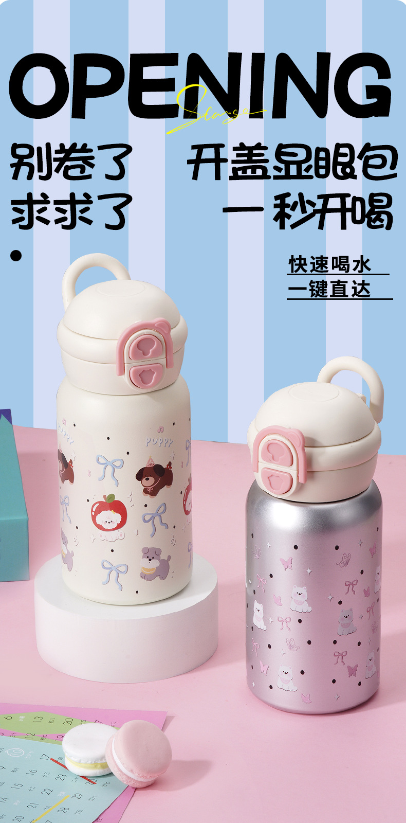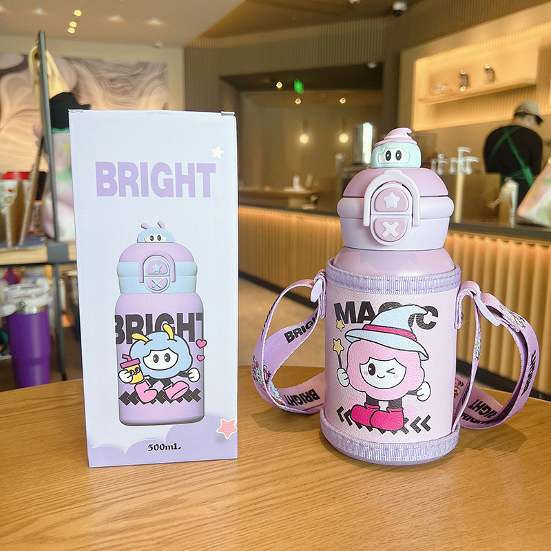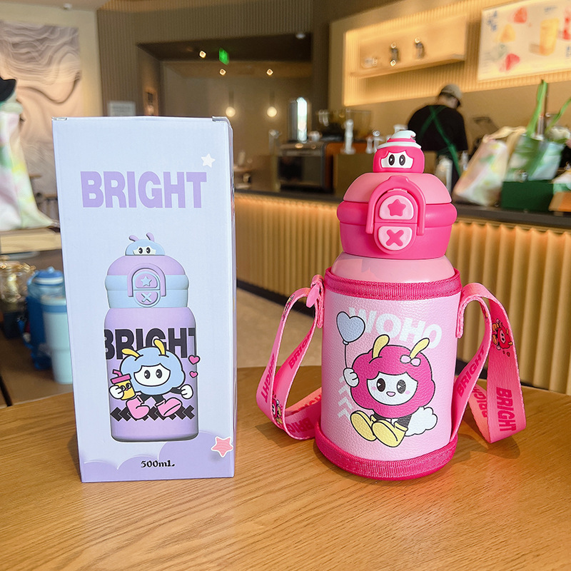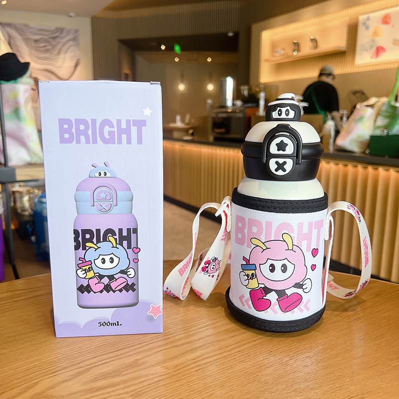보온병 컵 여자의 높은 가치 만화 더블 음료 컵 316 스테인레스 스틸 흡입 컵 휴대용 학생 탄성 커버 컵 선물스토어 가기