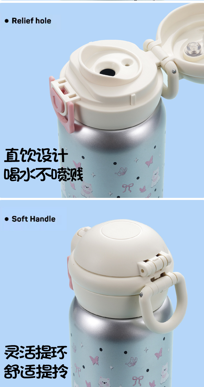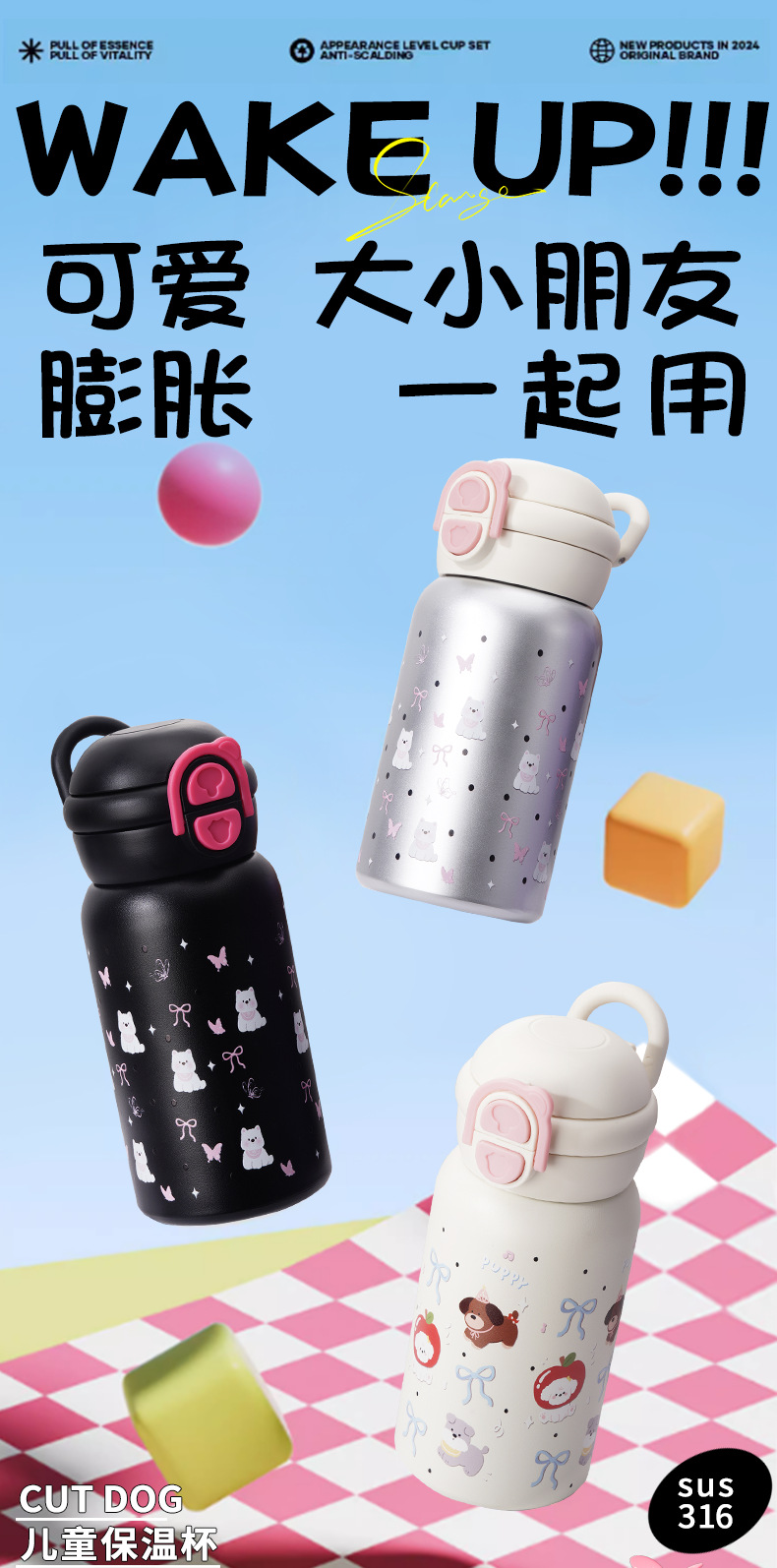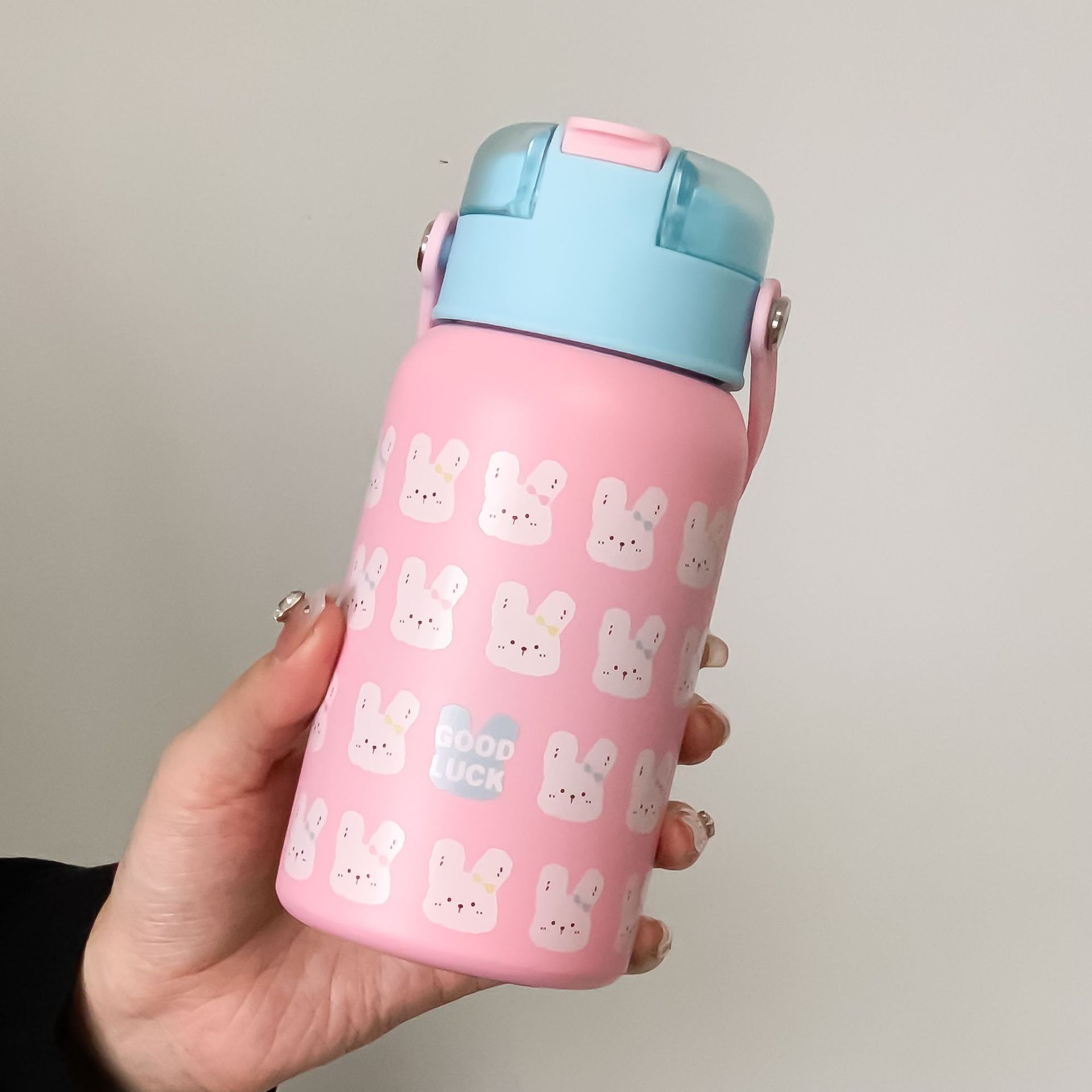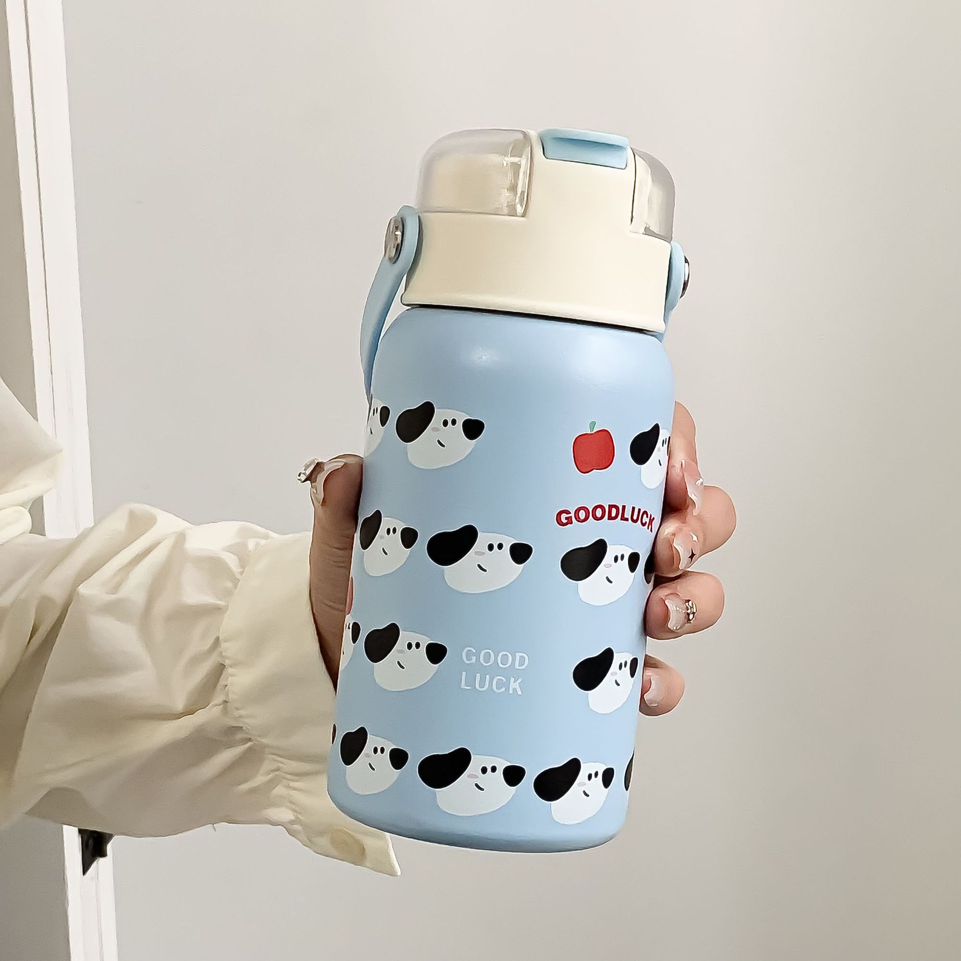 보온병 컵 여자의 높은 가치 만화 더블 음료 컵 316 스테인레스 스틸 흡입 컵 휴대용 학생 탄성 커버 컵 선물스토어 가기