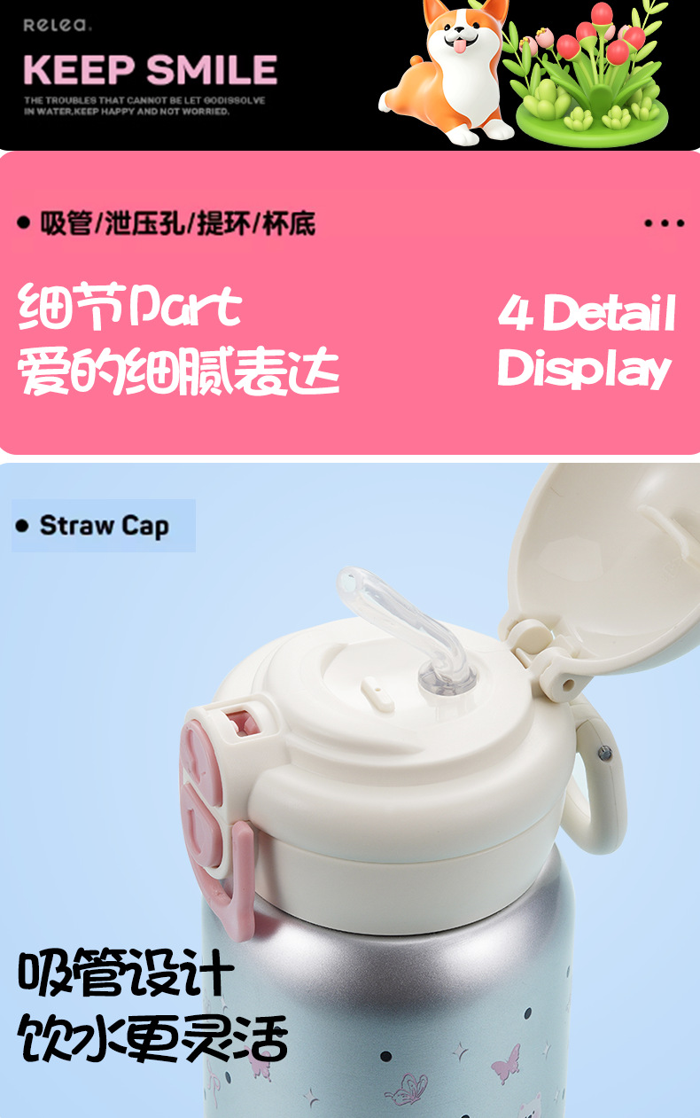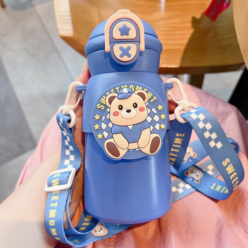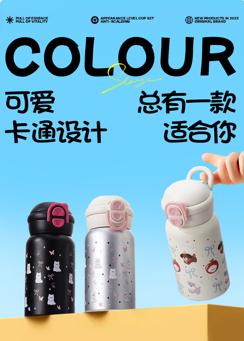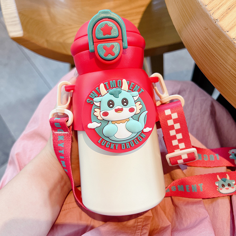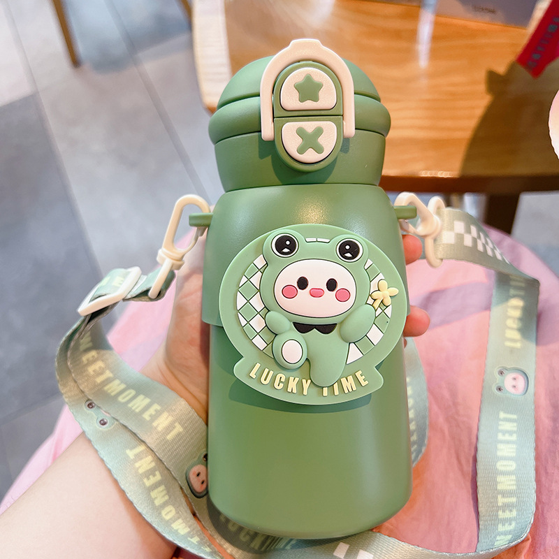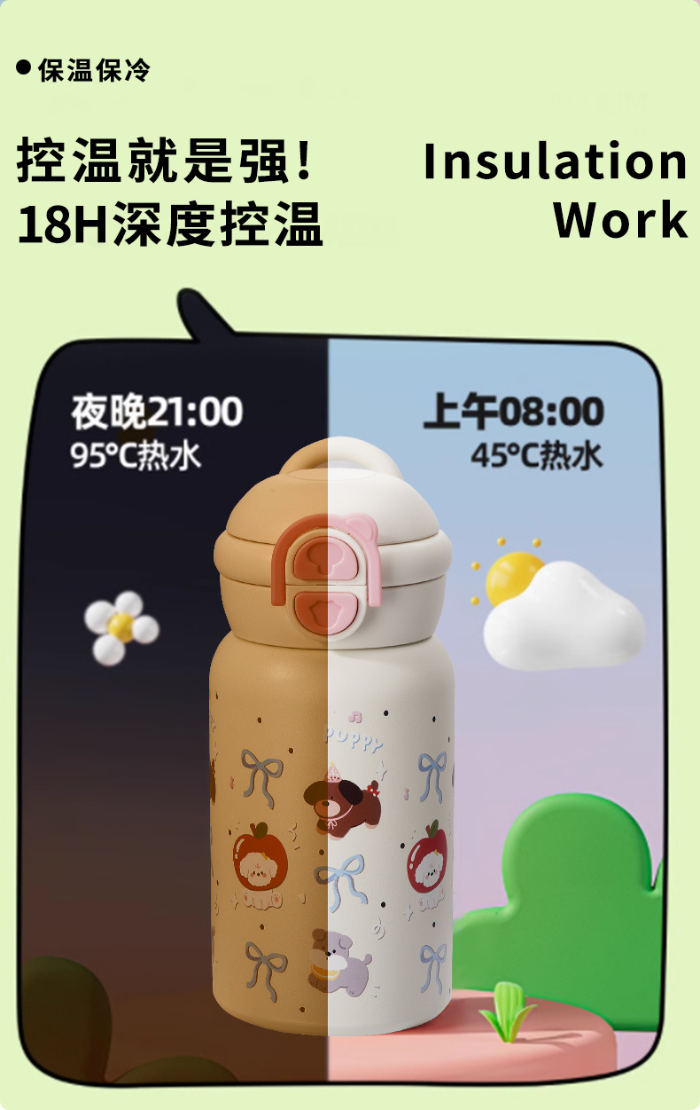 보온병 컵 여자의 높은 가치 만화 더블 음료 컵 316 스테인레스 스틸 흡입 컵 휴대용 학생 탄성 커버 컵 선물스토어 가기