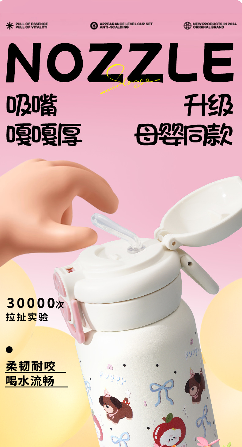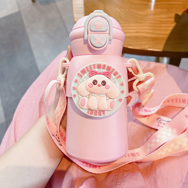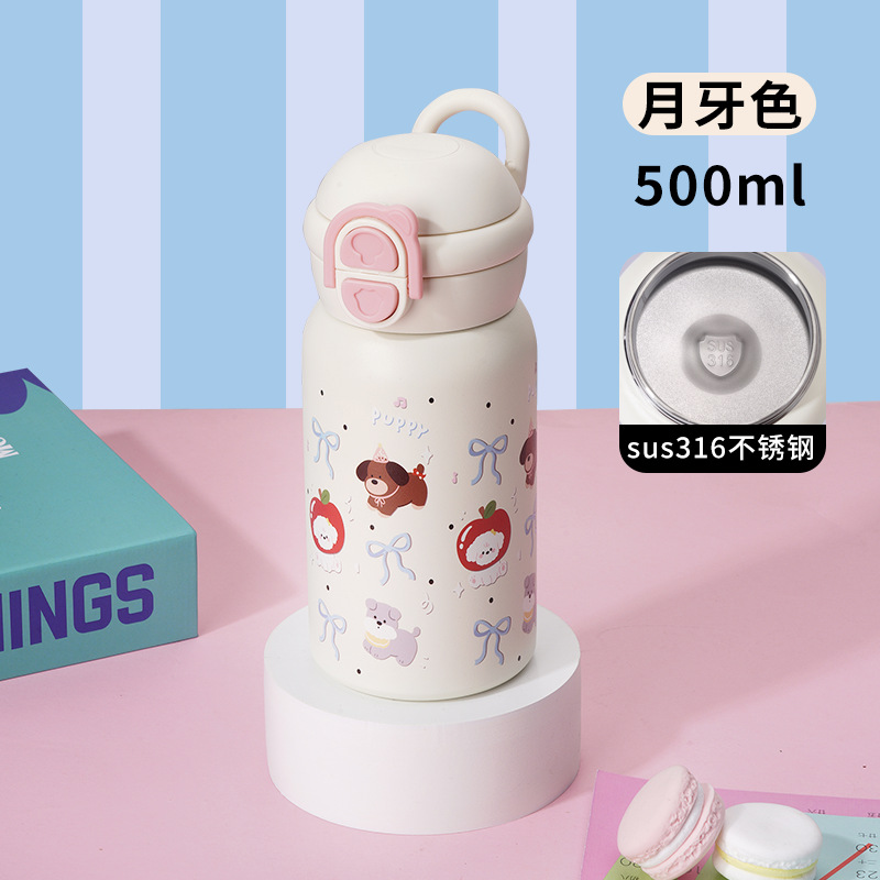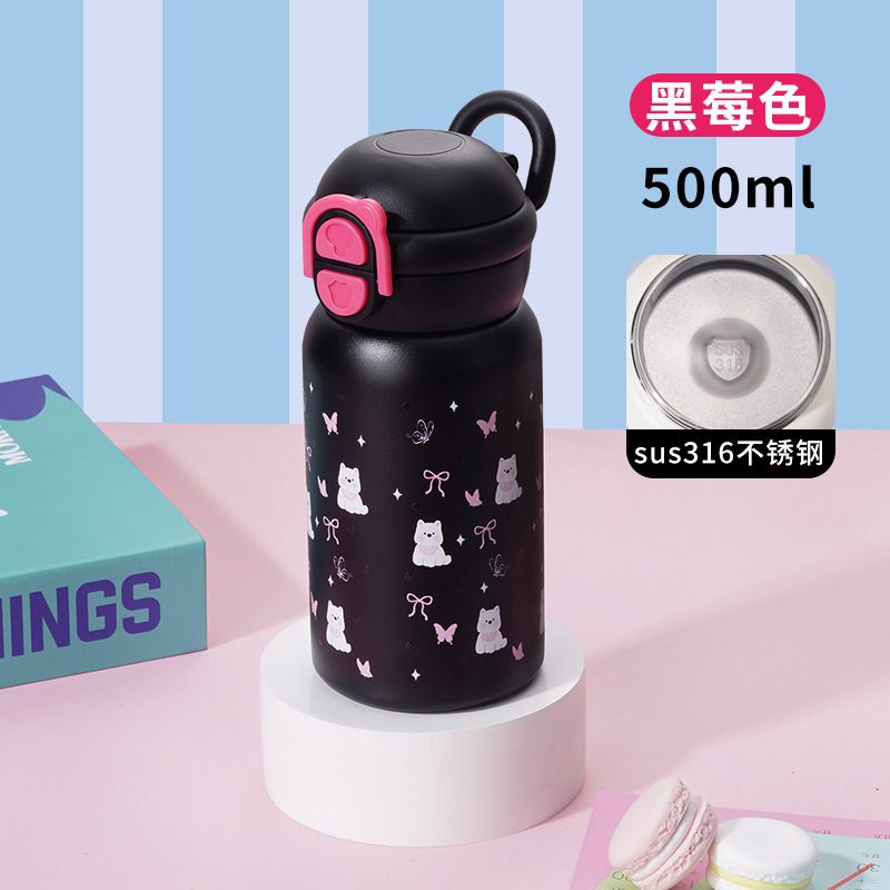 보온병 컵 여자의 높은 가치 만화 더블 음료 컵 316 스테인레스 스틸 흡입 컵 휴대용 학생 탄성 커버 컵 선물