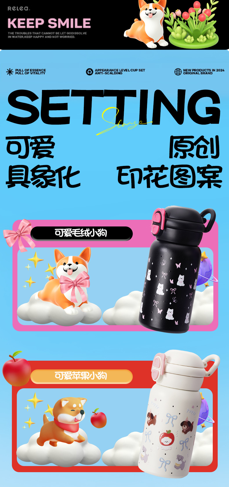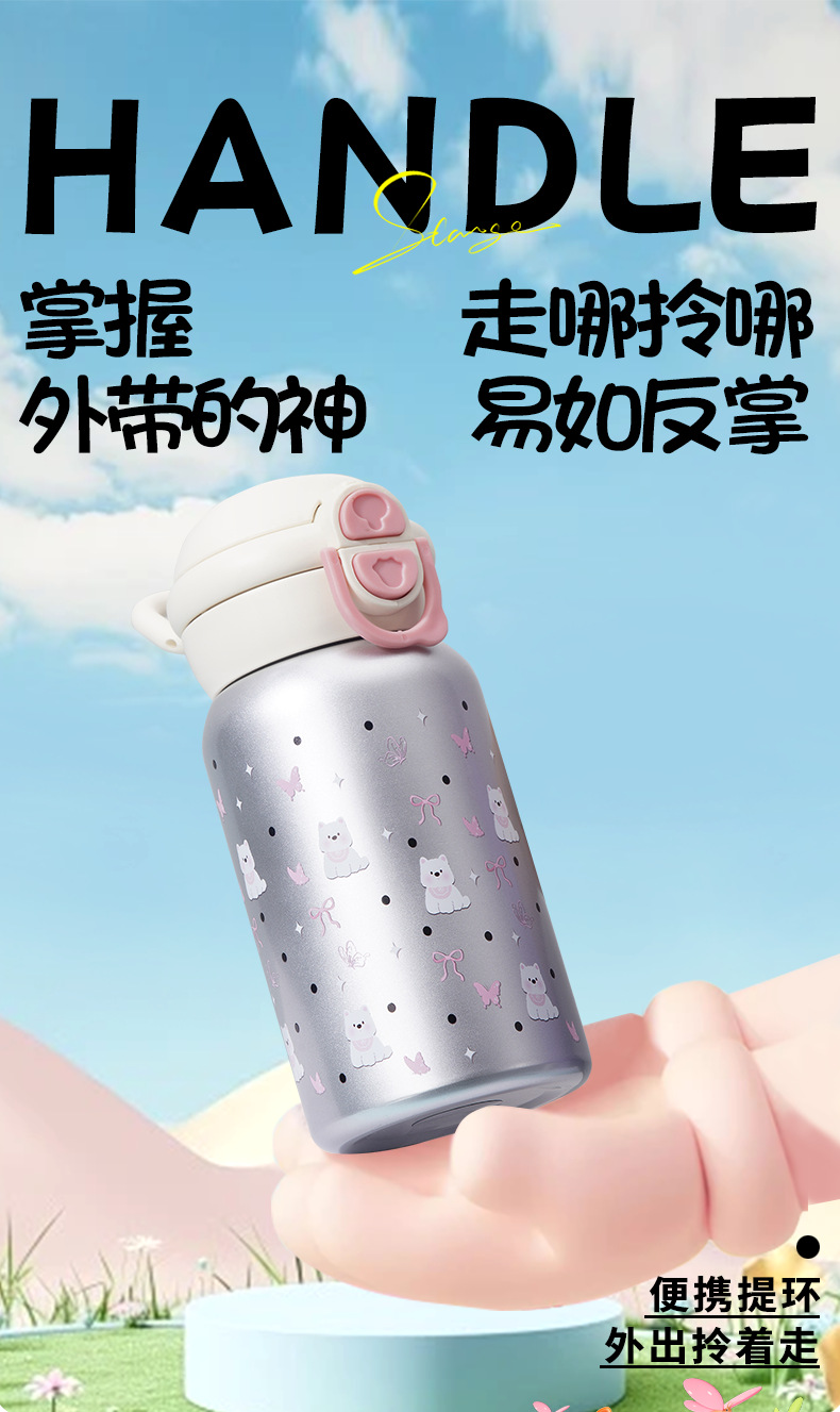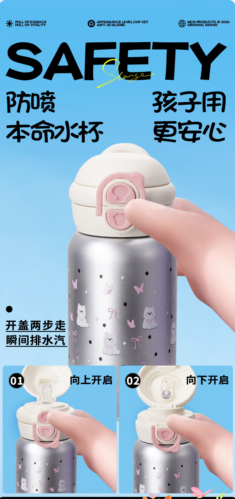 보온병 컵 여자의 높은 가치 만화 더블 음료 컵 316 스테인레스 스틸 흡입 컵 휴대용 학생 탄성 커버 컵 선물