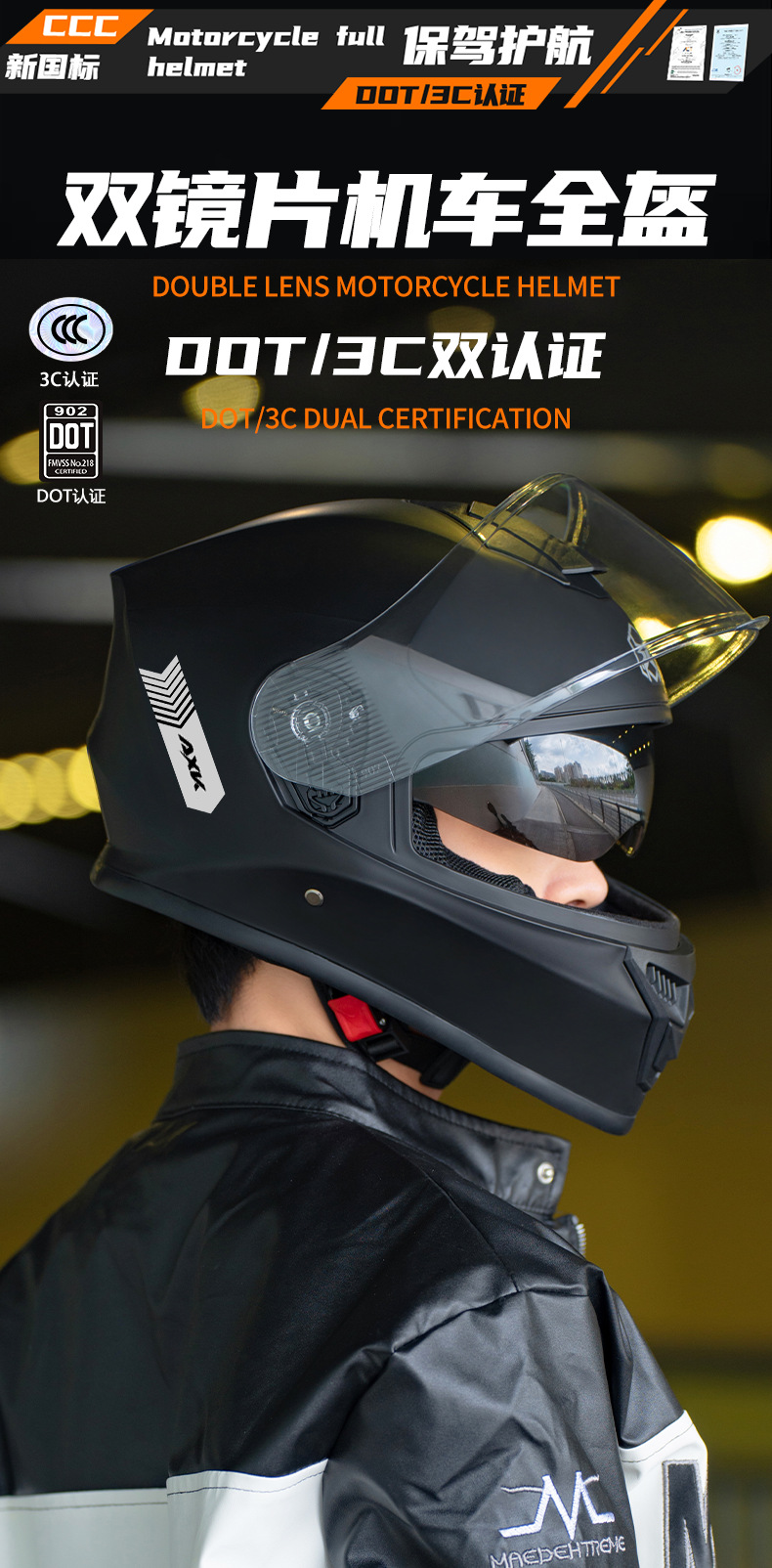 3.镜片:双镜片,外镜PC透明,内镜防晒。
