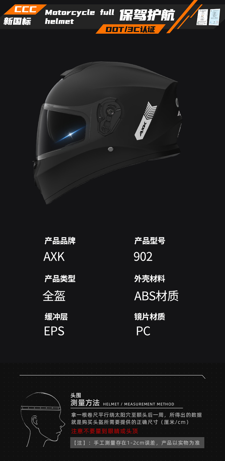 4.大小尺寸:均码,头围尺寸:54-61cm,单顶重量1.10KG(未含内盒),含内盒重量:1.39kg。