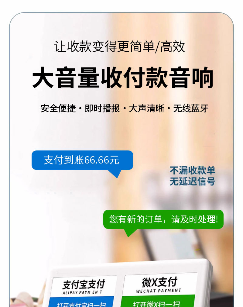 머니 컬렉션 음성 방송사 2 차원 코드 프롬프트 사운드 Alipay 컬렉션 플레이어 무선 계정 블루투스 스피커
