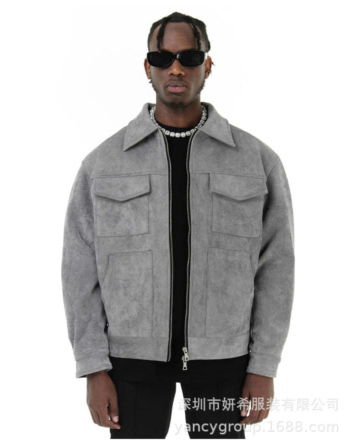 2025 유럽과 미국의 겨울 스웨이드 재킷 멀티 포켓 작업복 캐주얼 재킷 남자 2025 국경 뉴 아마존