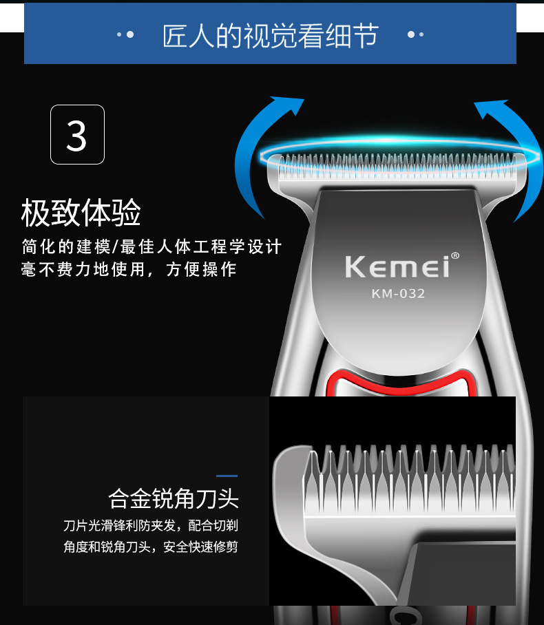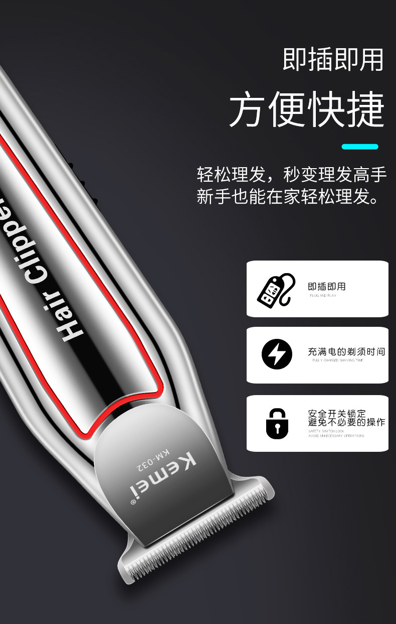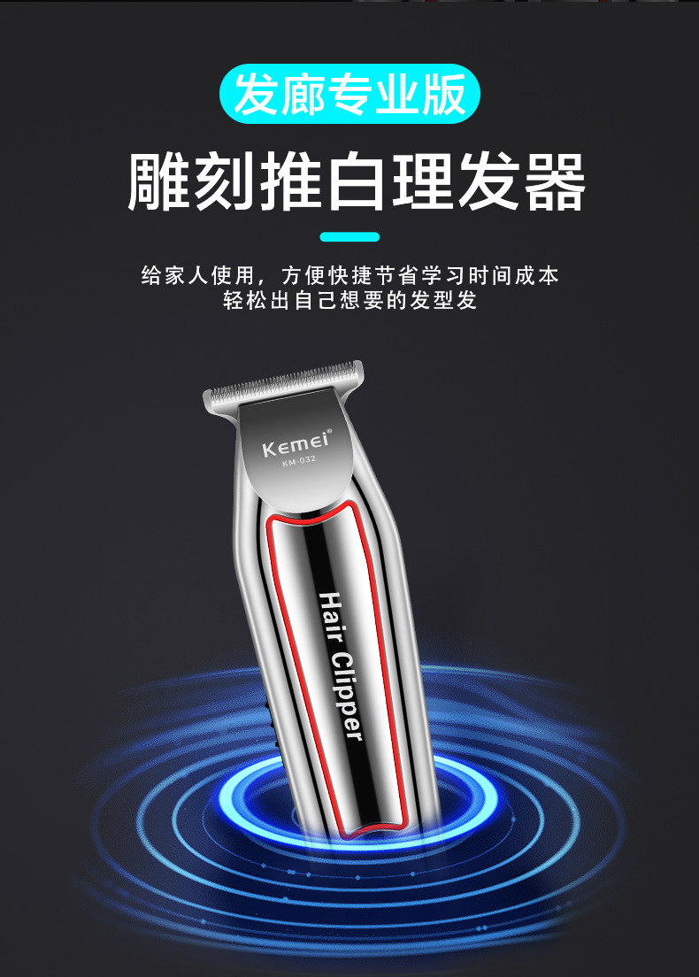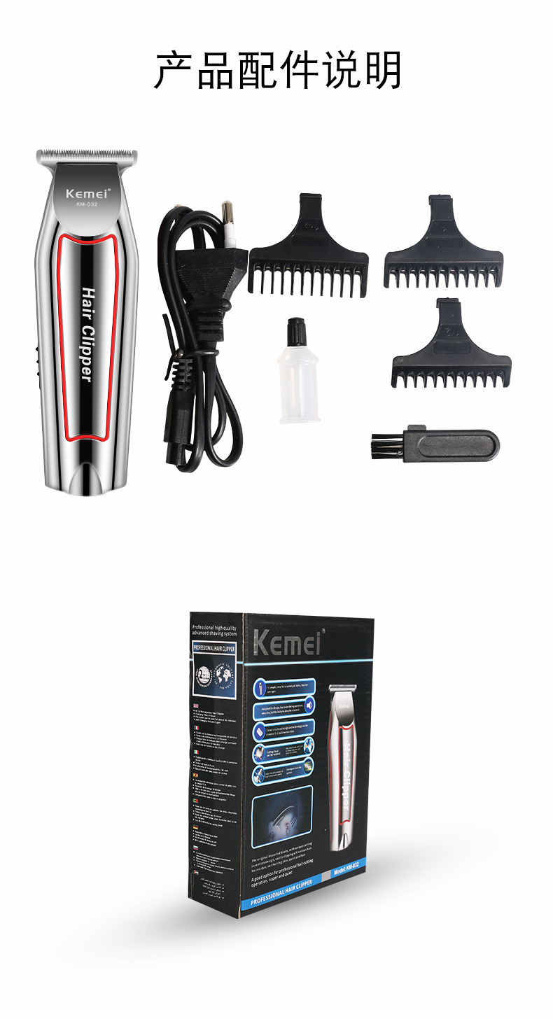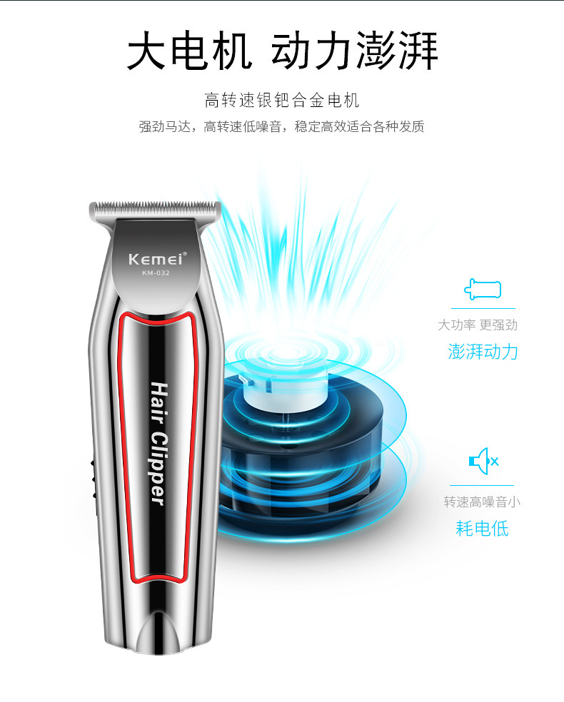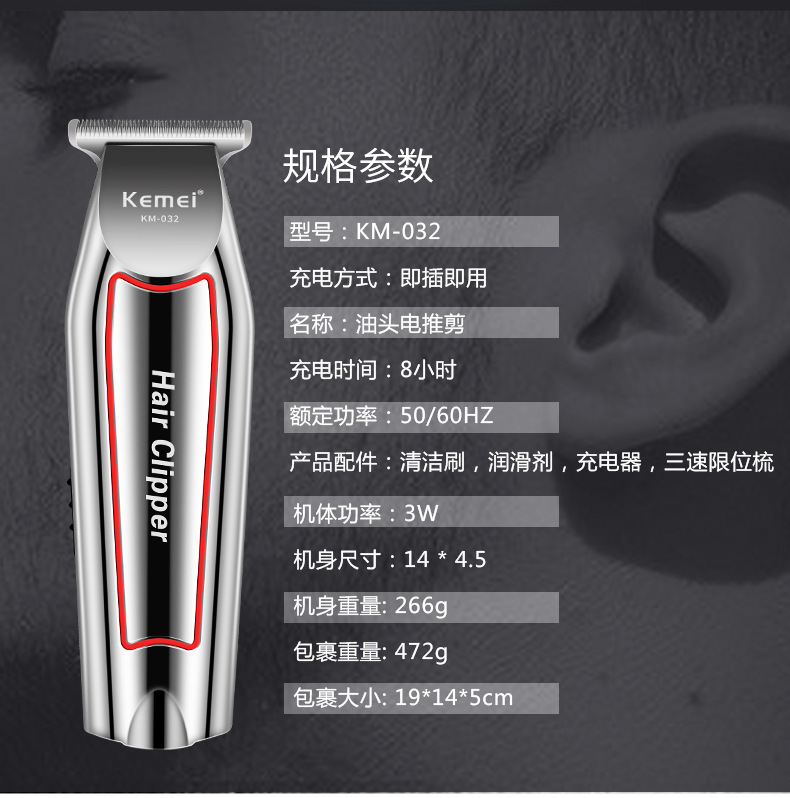 국경 간 KM-032 Kemei 헤어 클리퍼 전기 면도기 오일 헤드 조각 전기 클리퍼 헤어 살롱 특별 대머리 푸셔스토어 가기