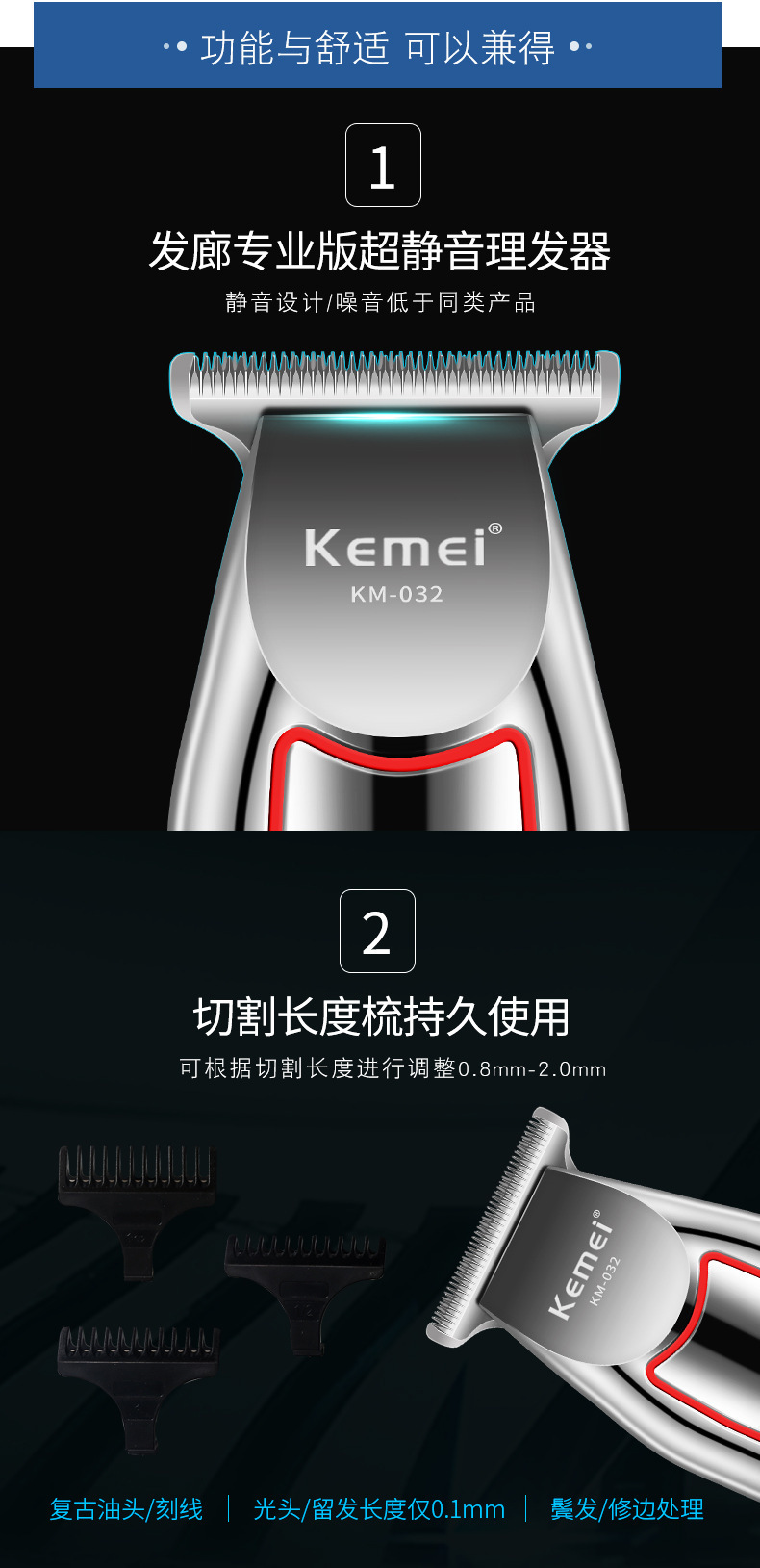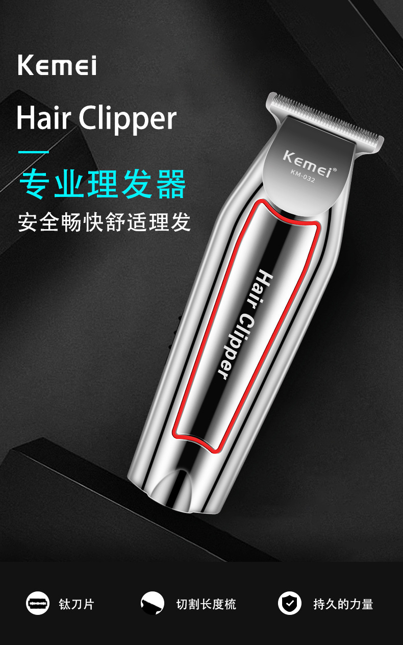 국경 간 KM-032 Kemei 헤어 클리퍼 전기 면도기 오일 헤드 조각 전기 클리퍼 헤어 살롱 특별 대머리 푸셔