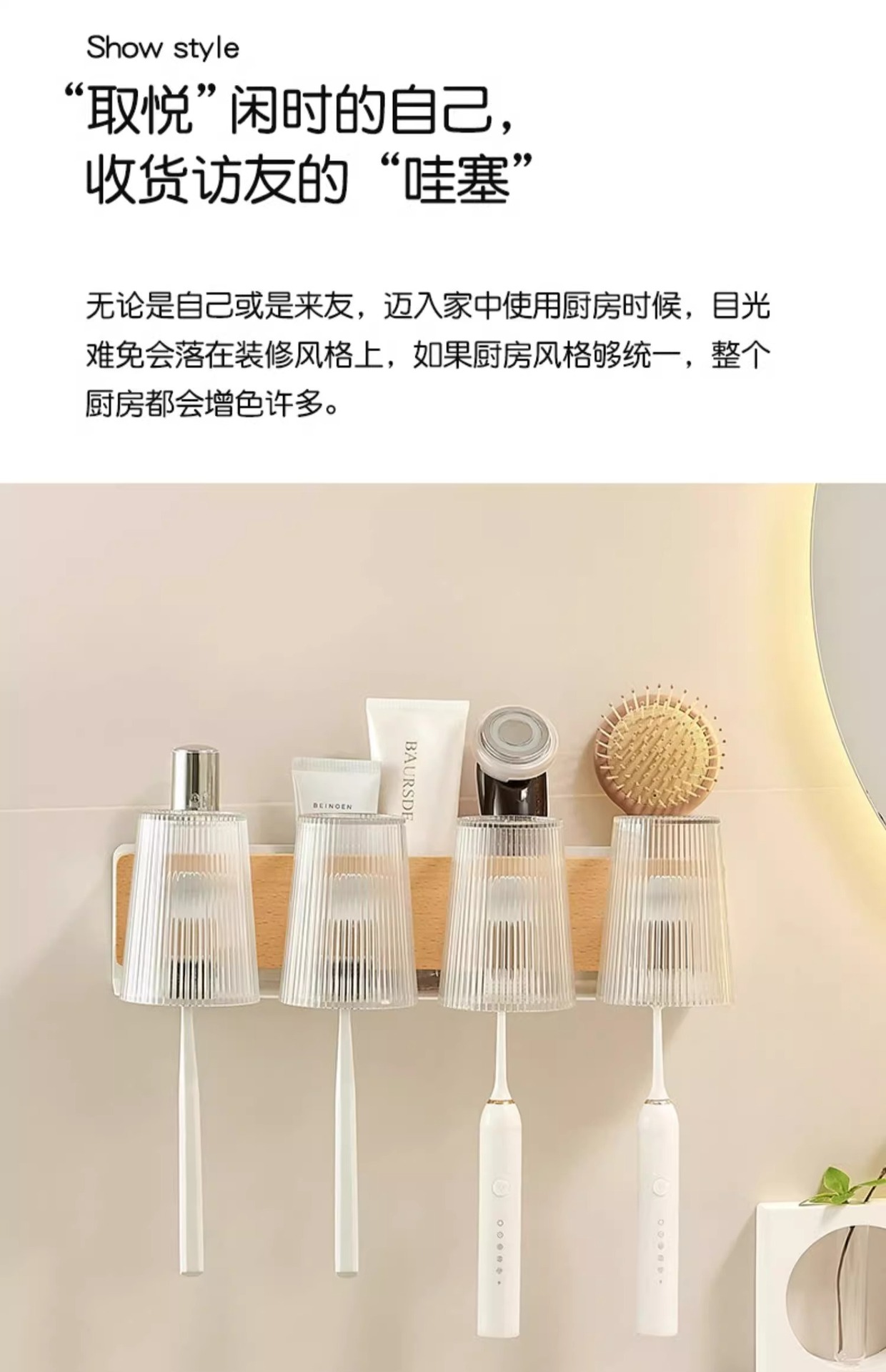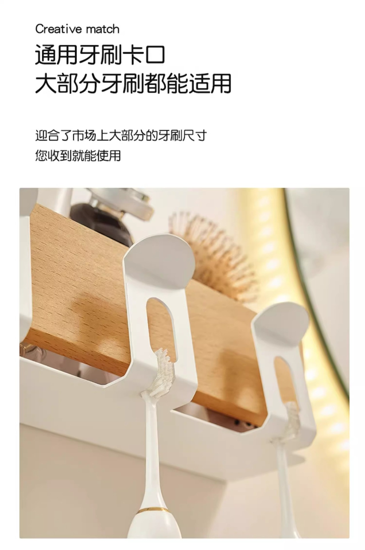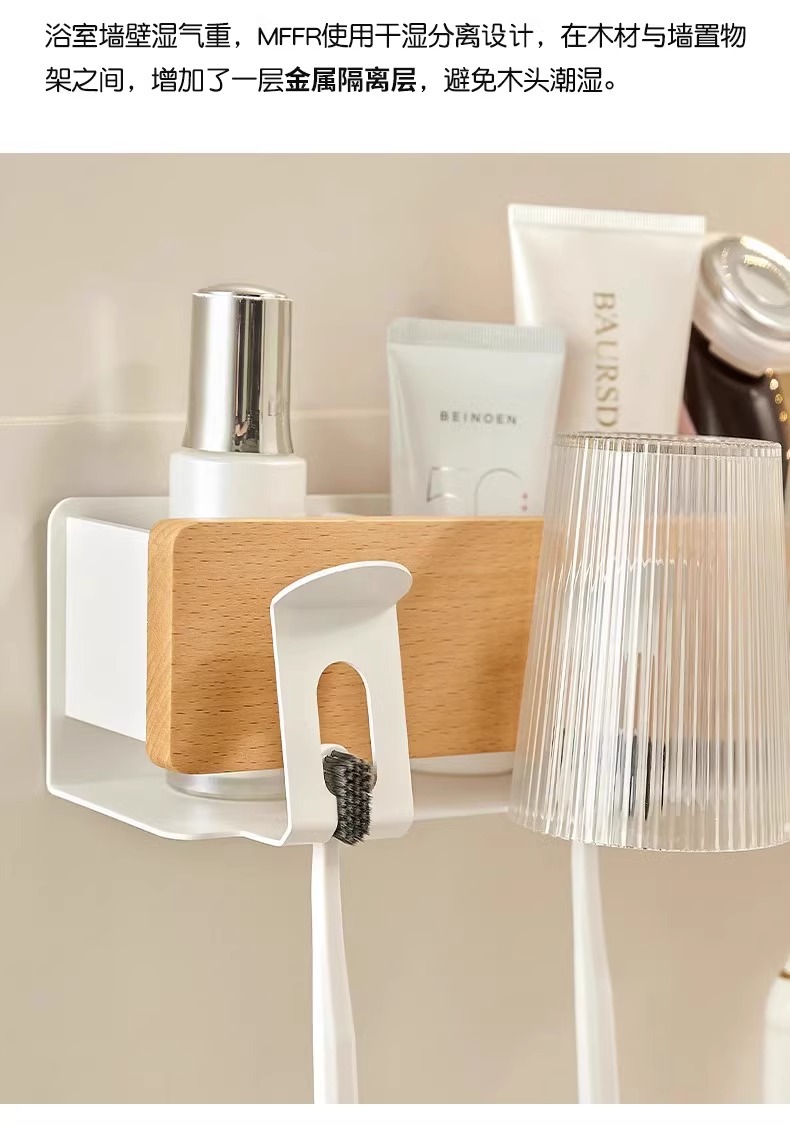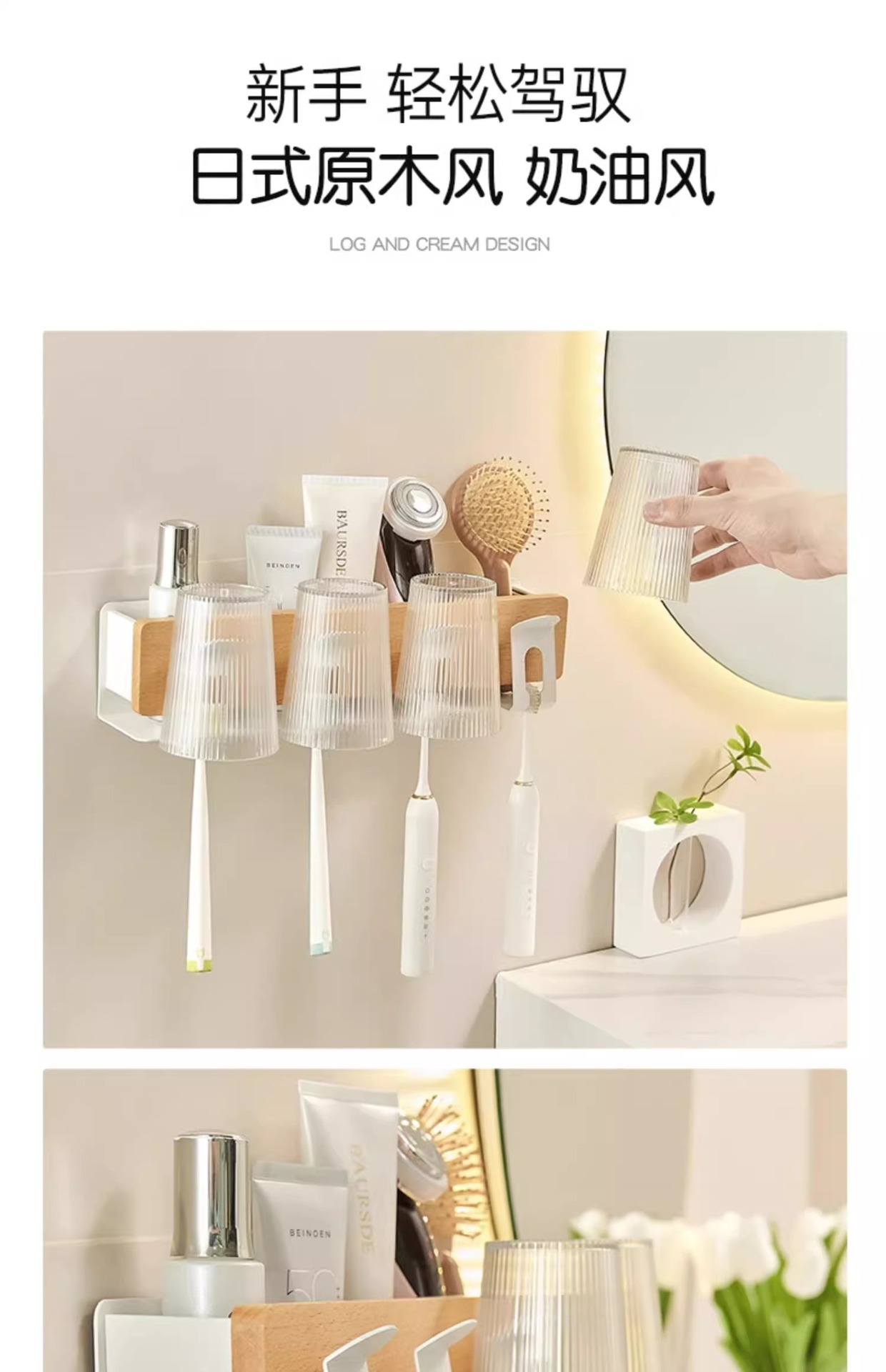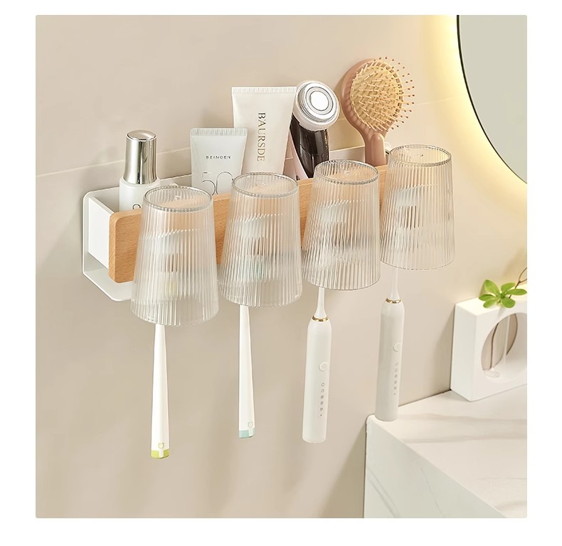치약 칫솔 보관 랙 구멍이없는 욕실 치약 컵 랙 욕실 가글 컵 랙 벽 교수형 너도밤 나무 칫솔 홀더