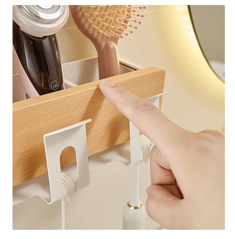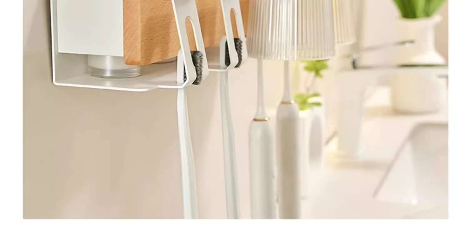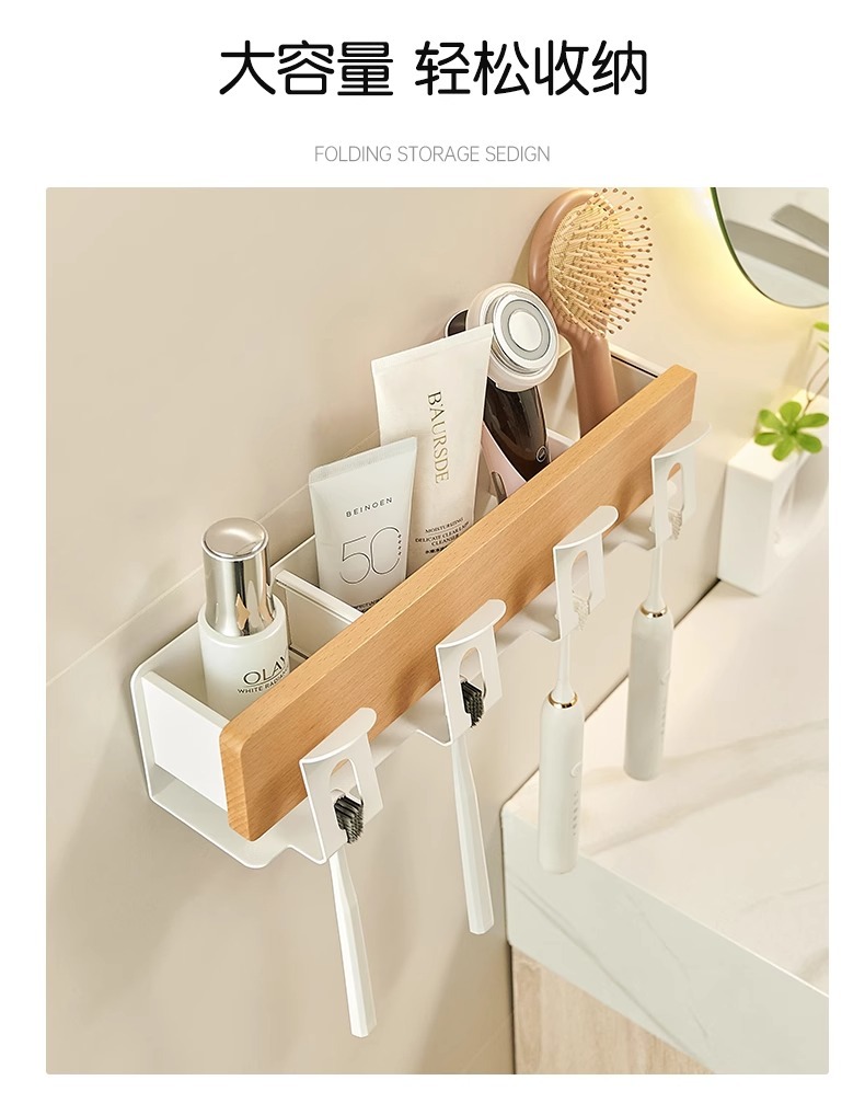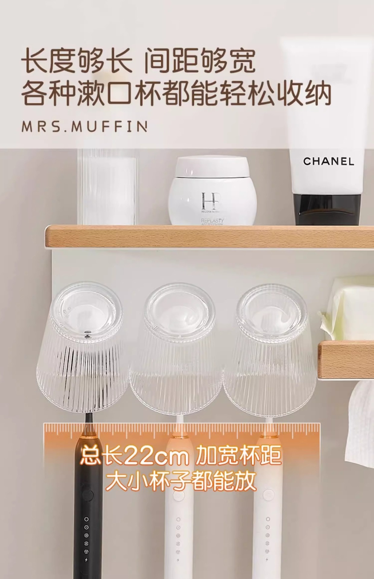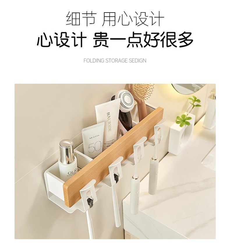 치약 칫솔 보관 랙 구멍이없는 욕실 치약 컵 랙 욕실 가글 컵 랙 벽 교수형 너도밤 나무 칫솔 홀더