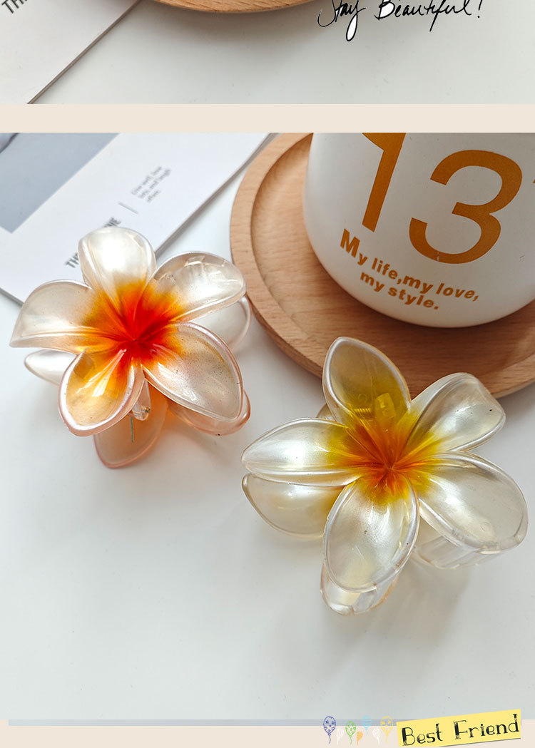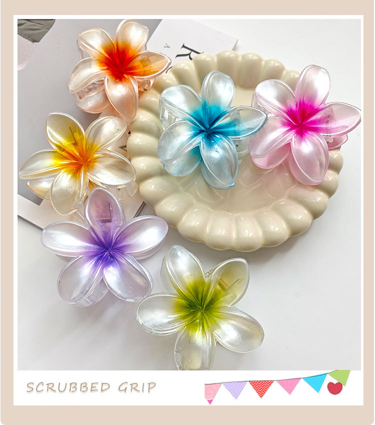 머리 뒤쪽에 헤어핀, 포니테일, 샤크핀, 헤어 액세서리, 헤어 액세서리로 맞춤 제작된 진주빛 플루메리아 및 바스스포트스토어 가기