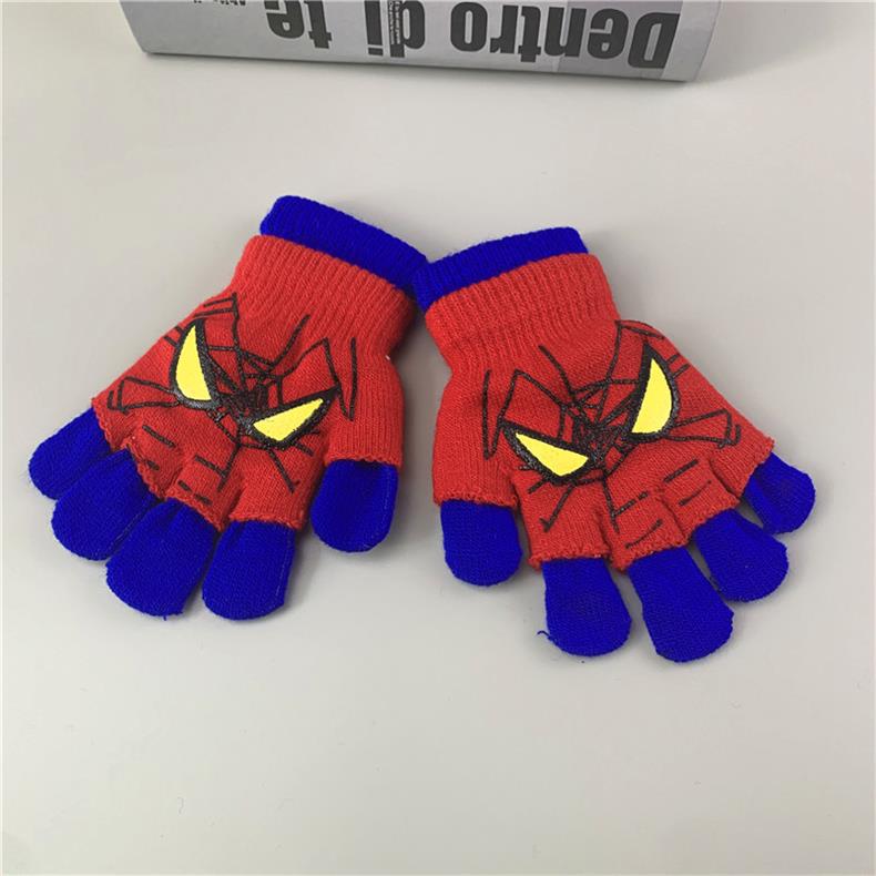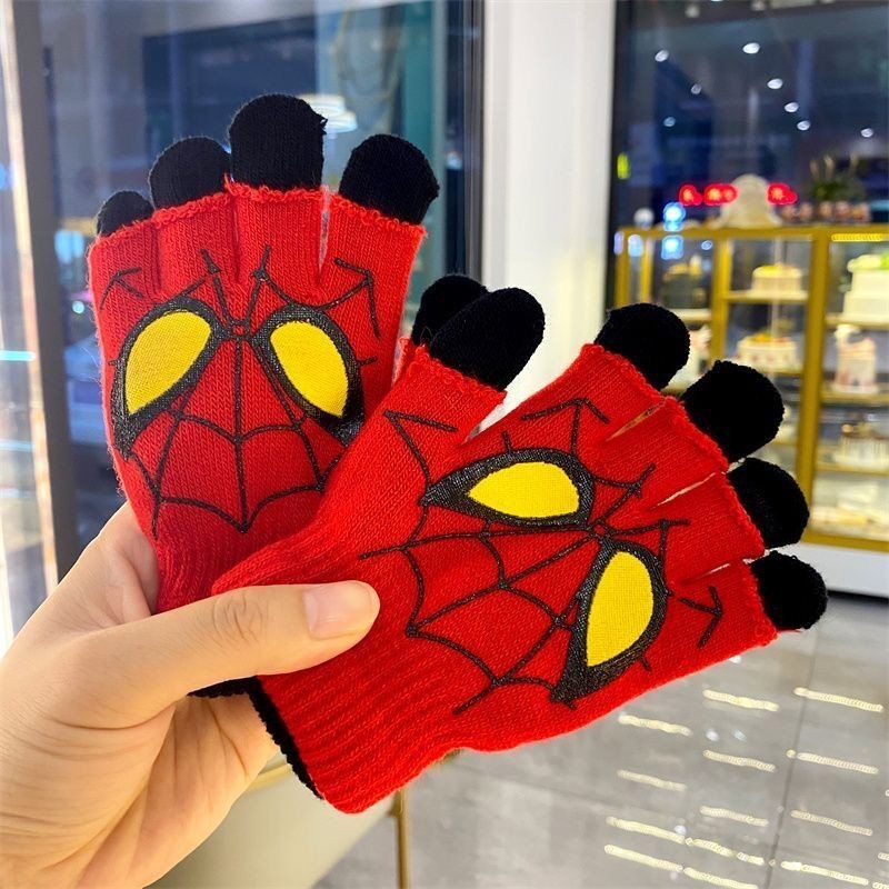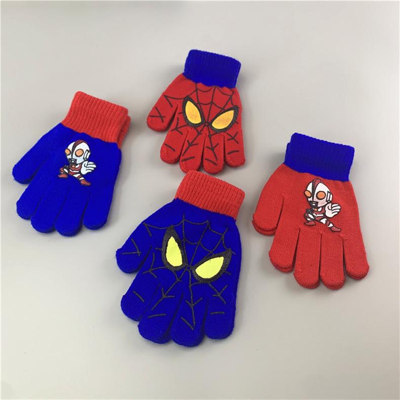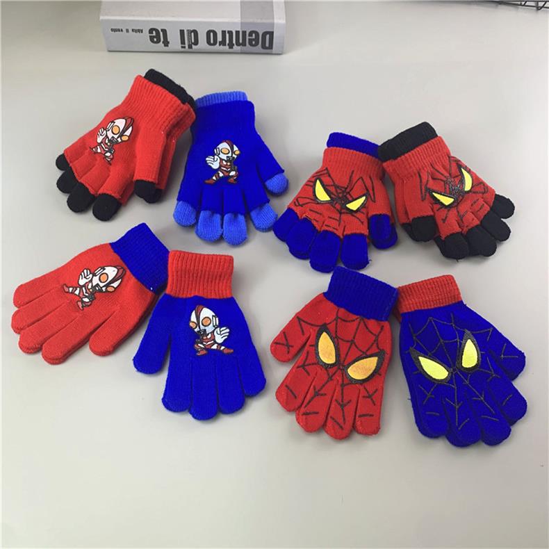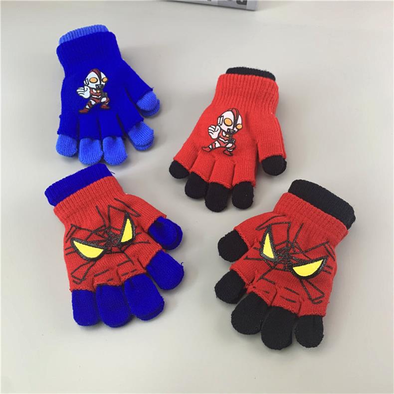 어린이 울트라 맨 장갑 가을과 겨울 더블 레이어 따뜻한 5 손가락 반 손가락 소년 학생들이 스파이더 맨 만화 쓰기스토어 가기