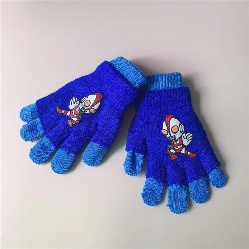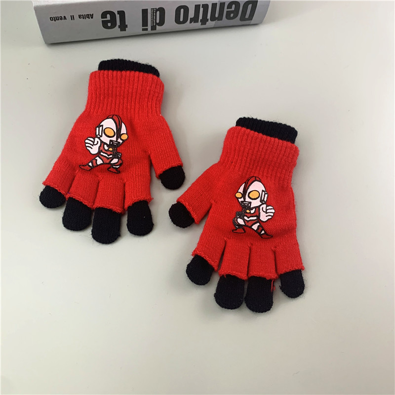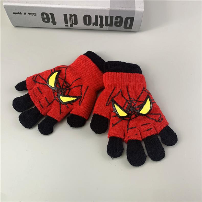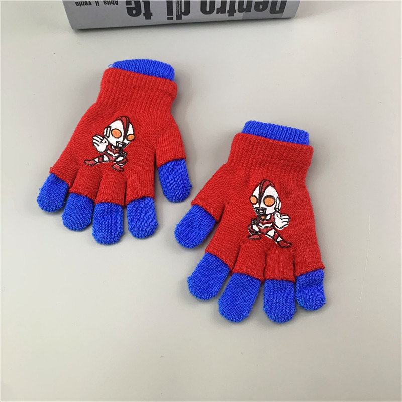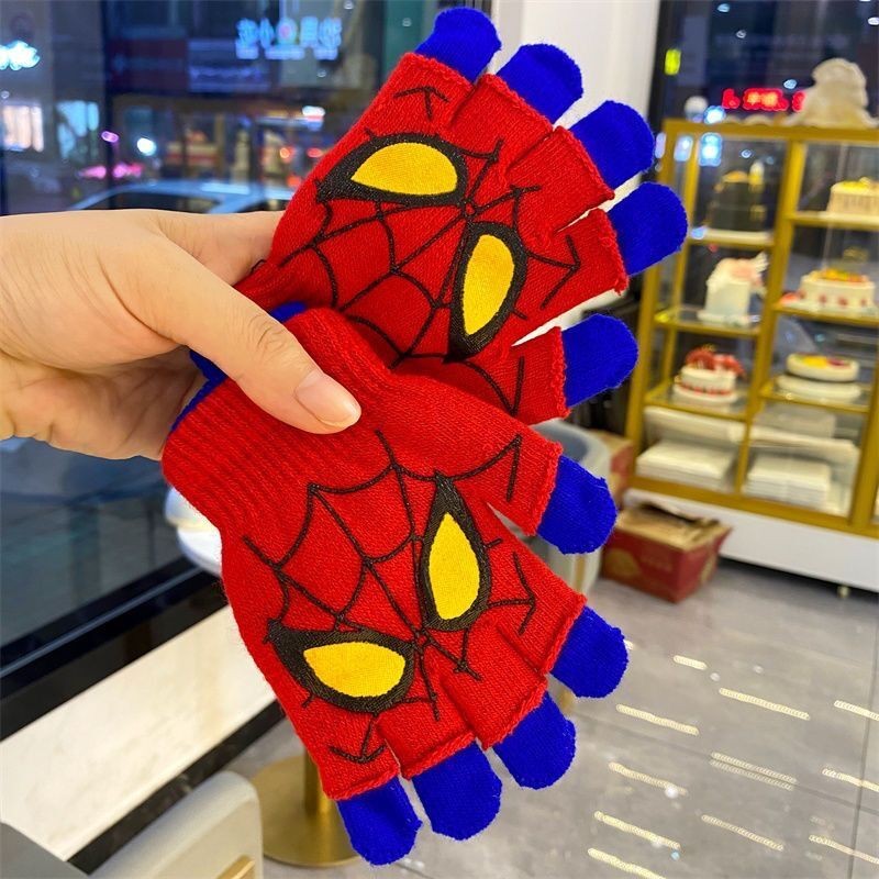 어린이 울트라 맨 장갑 가을과 겨울 더블 레이어 따뜻한 5 손가락 반 손가락 소년 학생들이 스파이더 맨 만화 쓰기스토어 가기
