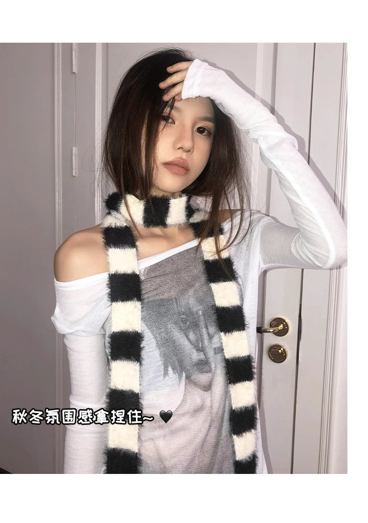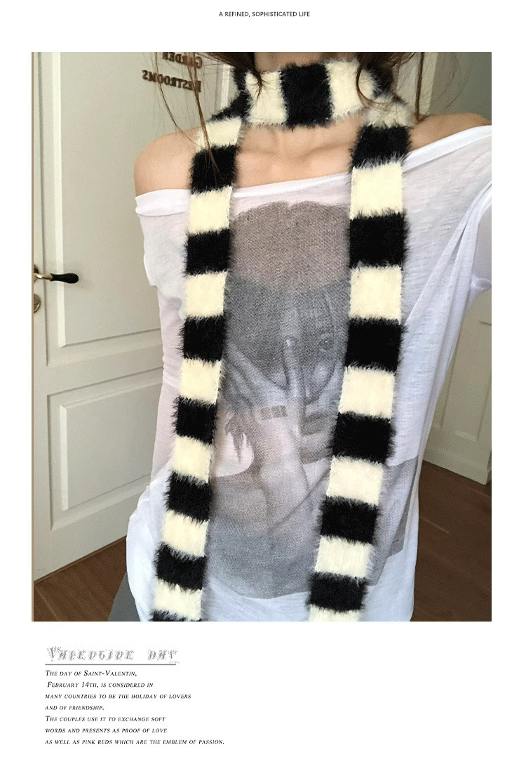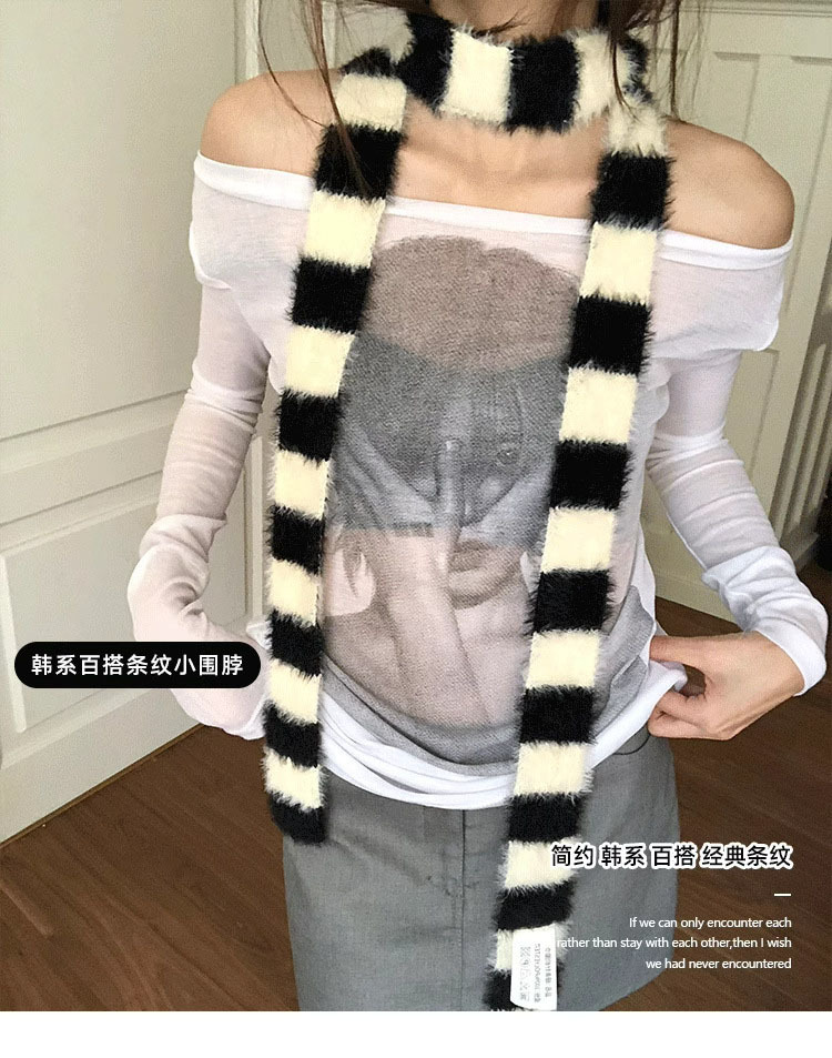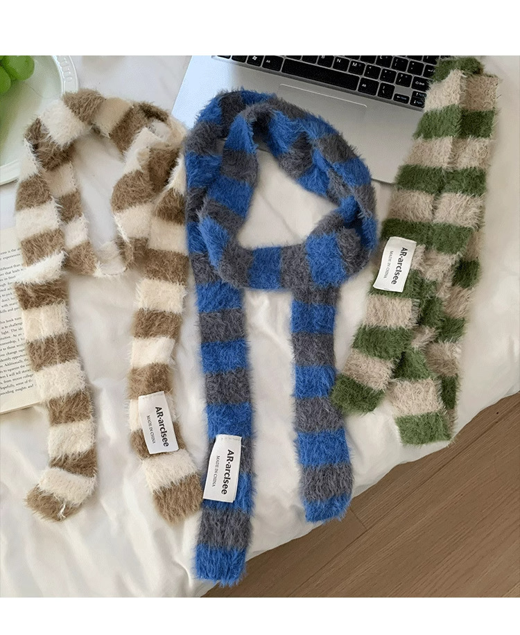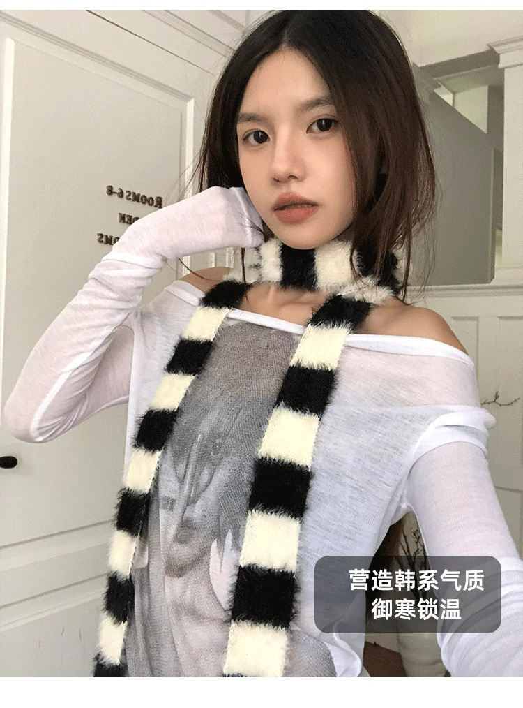 디자인감이 뛰어난 핫걸 다용도 장식 스카프, 인터넷 연예인 스타일, 가을 겨울 여성 통근용 한국 스타일의 얇고 긴 스트라이프 플러시 스카프스토어 가기