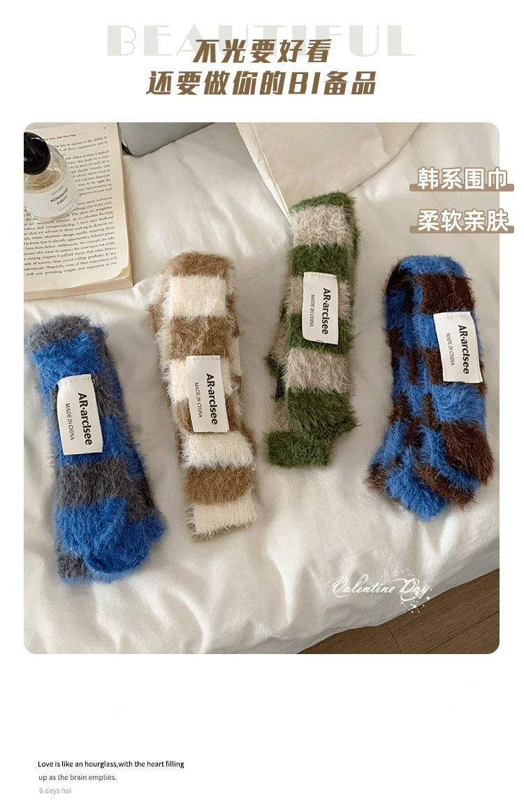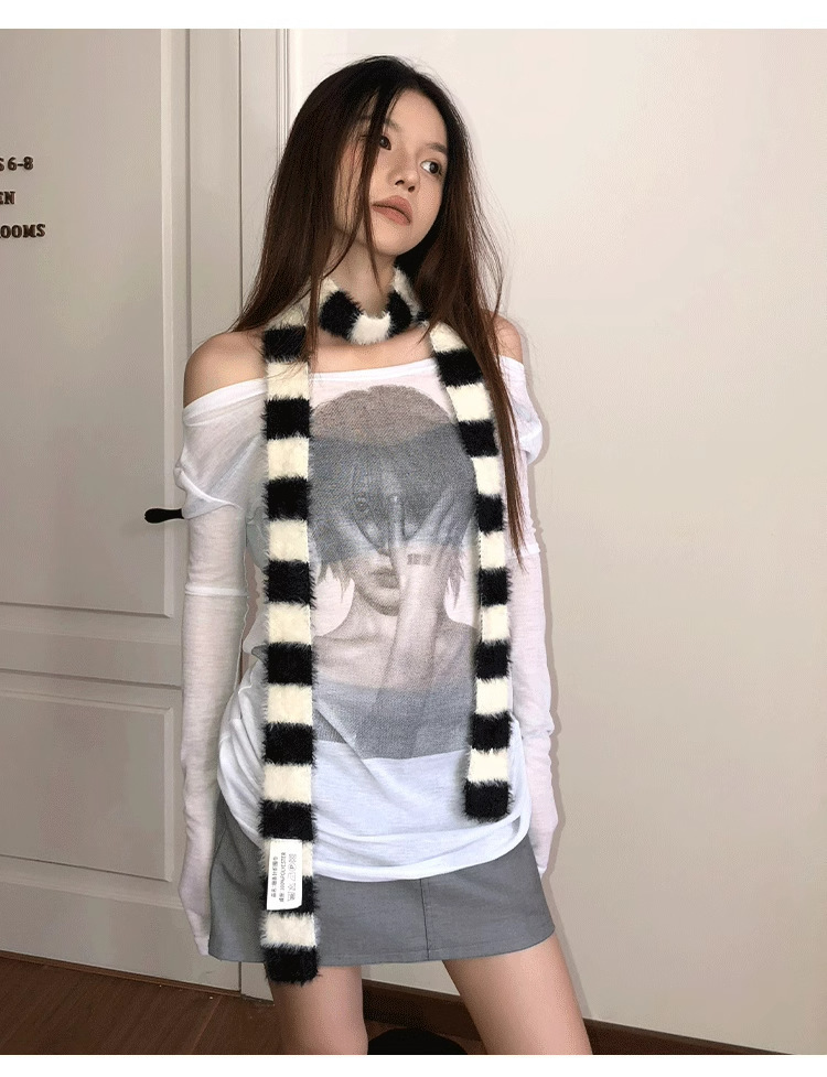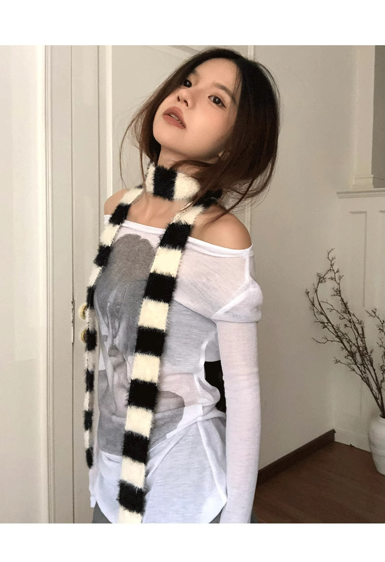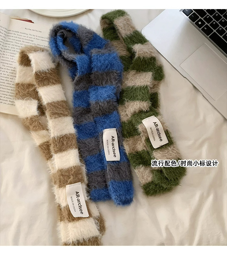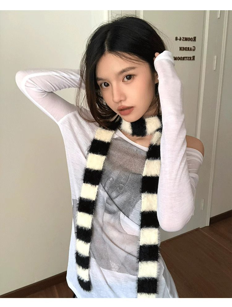 디자인감이 뛰어난 핫걸 다용도 장식 스카프, 인터넷 연예인 스타일, 가을 겨울 여성 통근용 한국 스타일의 얇고 긴 스트라이프 플러시 스카프스토어 가기