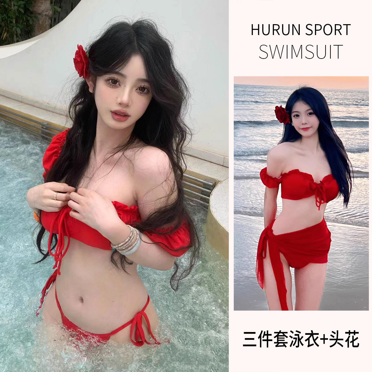 • 빨간색 3피스 수영복(머리띠 제외)
