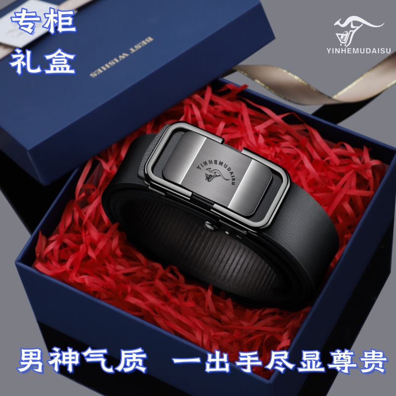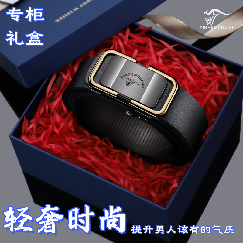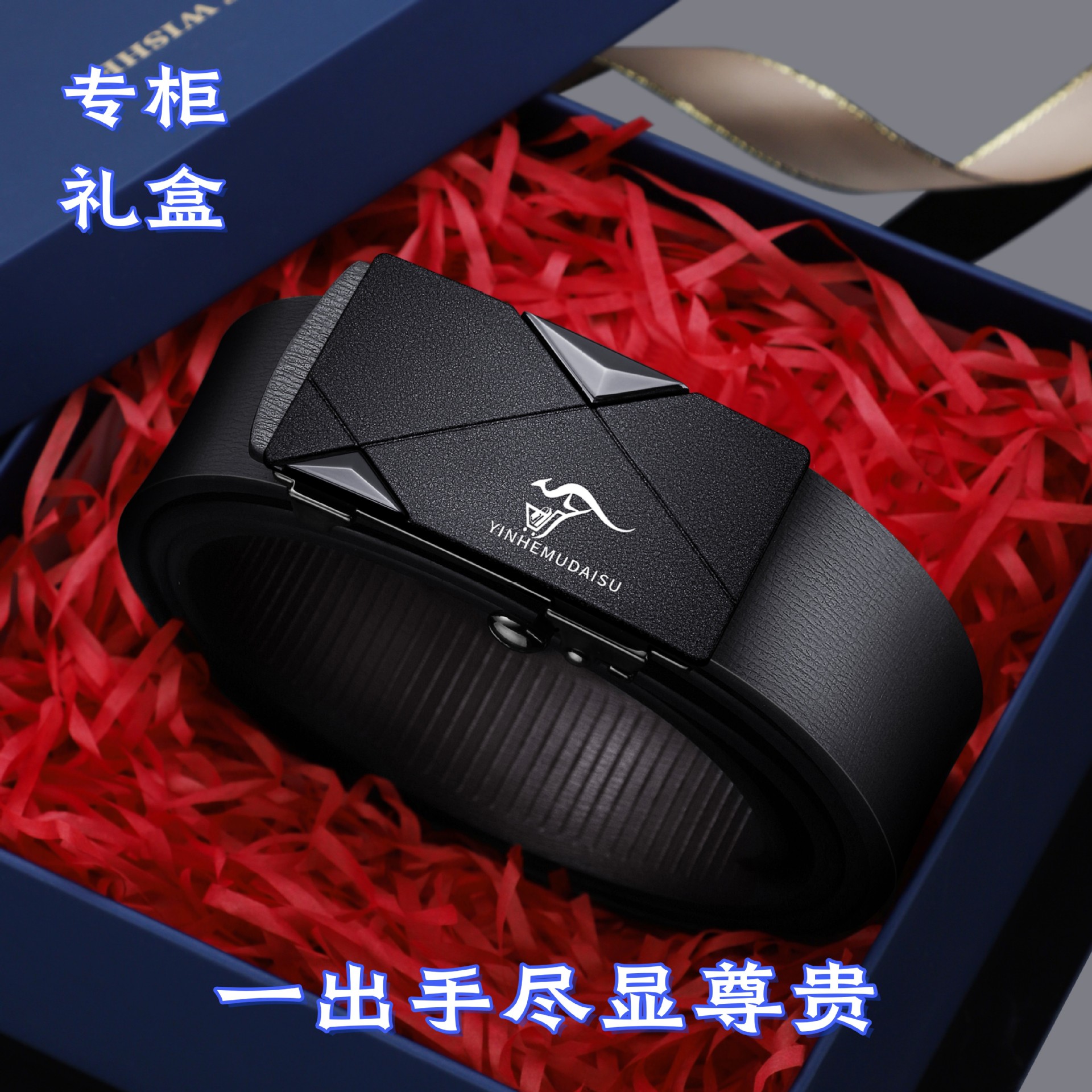 캥거루 신형 남성 가죽 벨트 천연 가죽 무치 자동 버클 소가죽 벨트 남성 비즈니스 캐주얼 남성용 팬츠 벨트 젊은 남성용스토어 가기