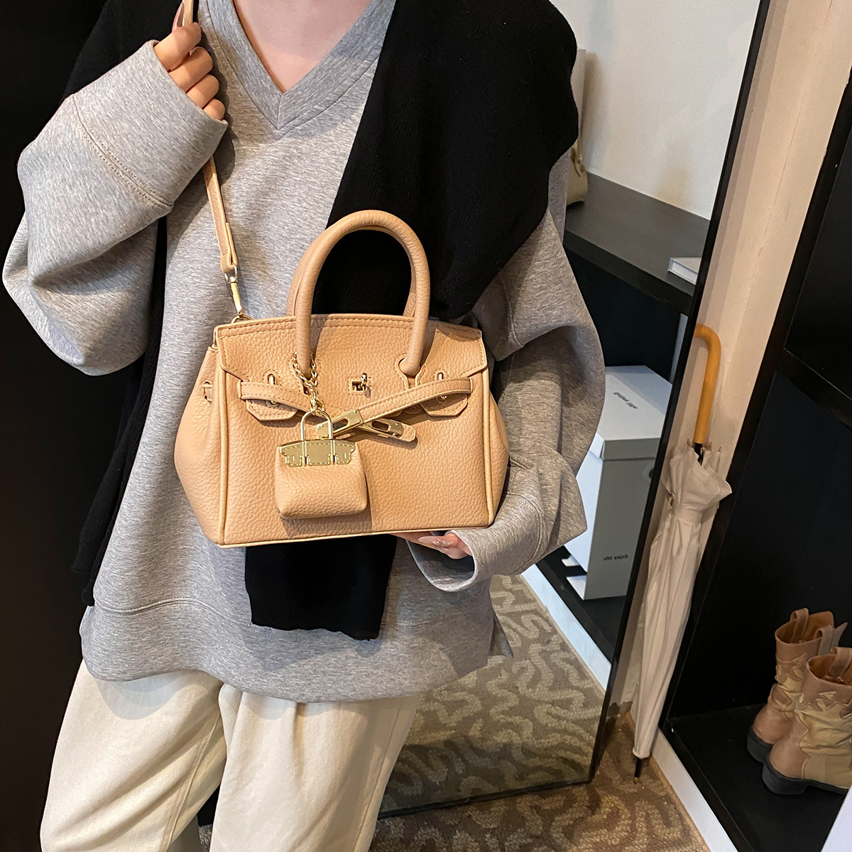 새로운 패션 휴대용 켈리 여성 가방 틈새 하이 엔드 대용량 가방 인터넷 축하 틈새 싱글 어깨 크로스 바디 백
