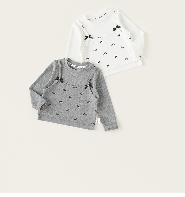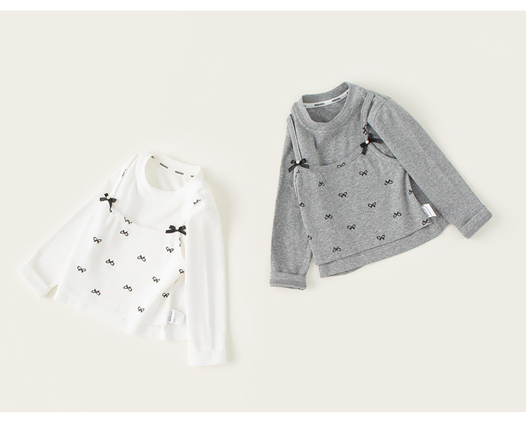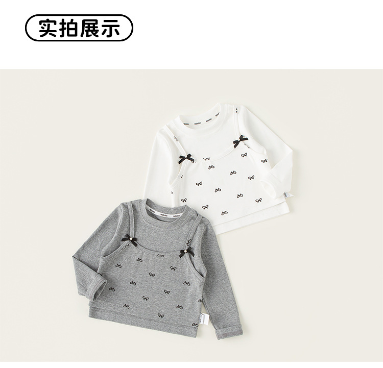 유바오 아동복 여아 투피스 스타일 상의 2026 봄 가을 신상 아동 티셔츠 여아 리본 베이스 레이어 티셔츠스토어 가기