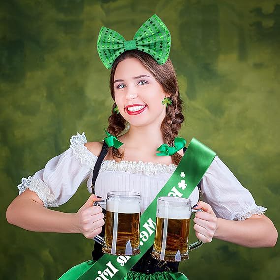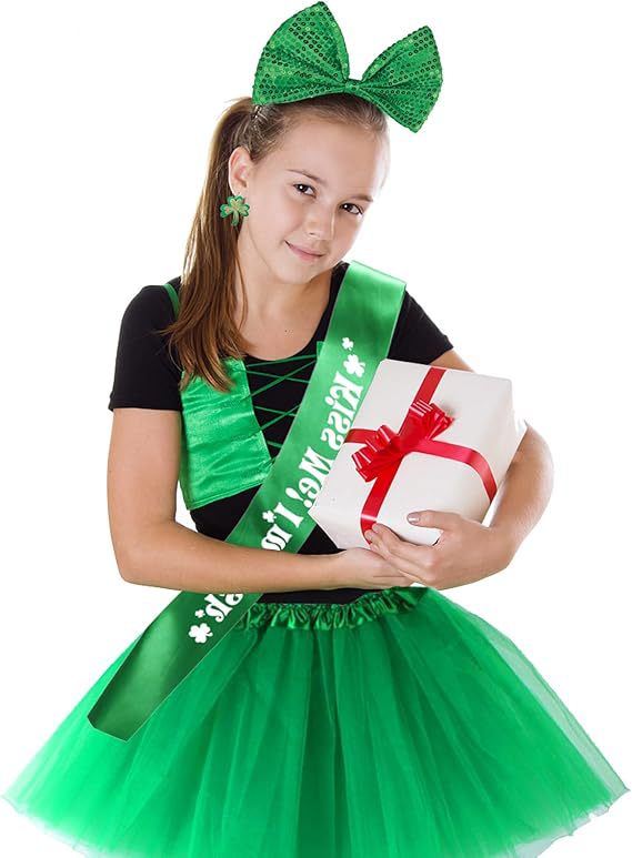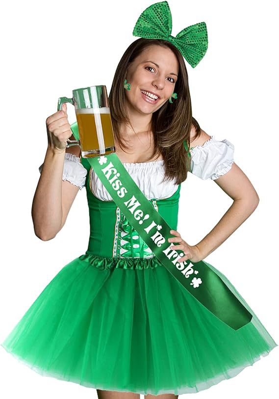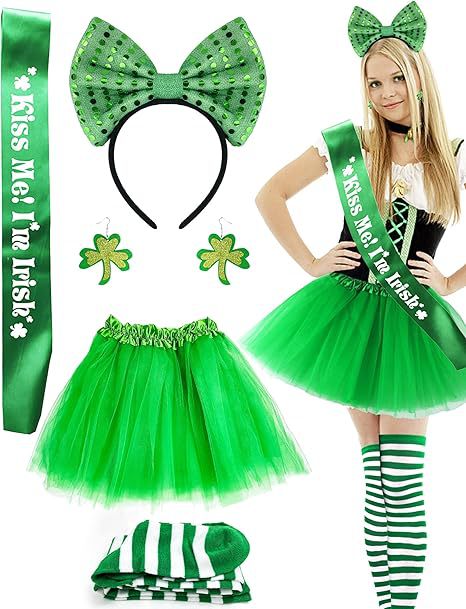 아일랜드 성 패트릭 데이 망사 스커트 머리띠 귀걸이 어깨끈 클로버 파티 세트 파티 스타일스토어 가기