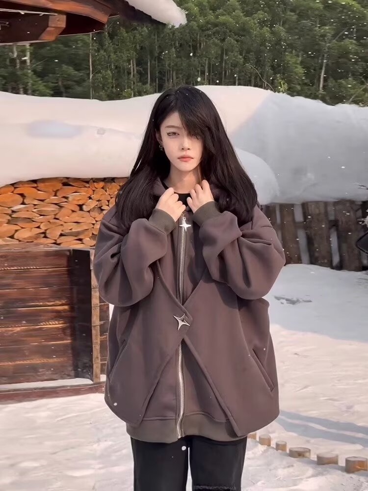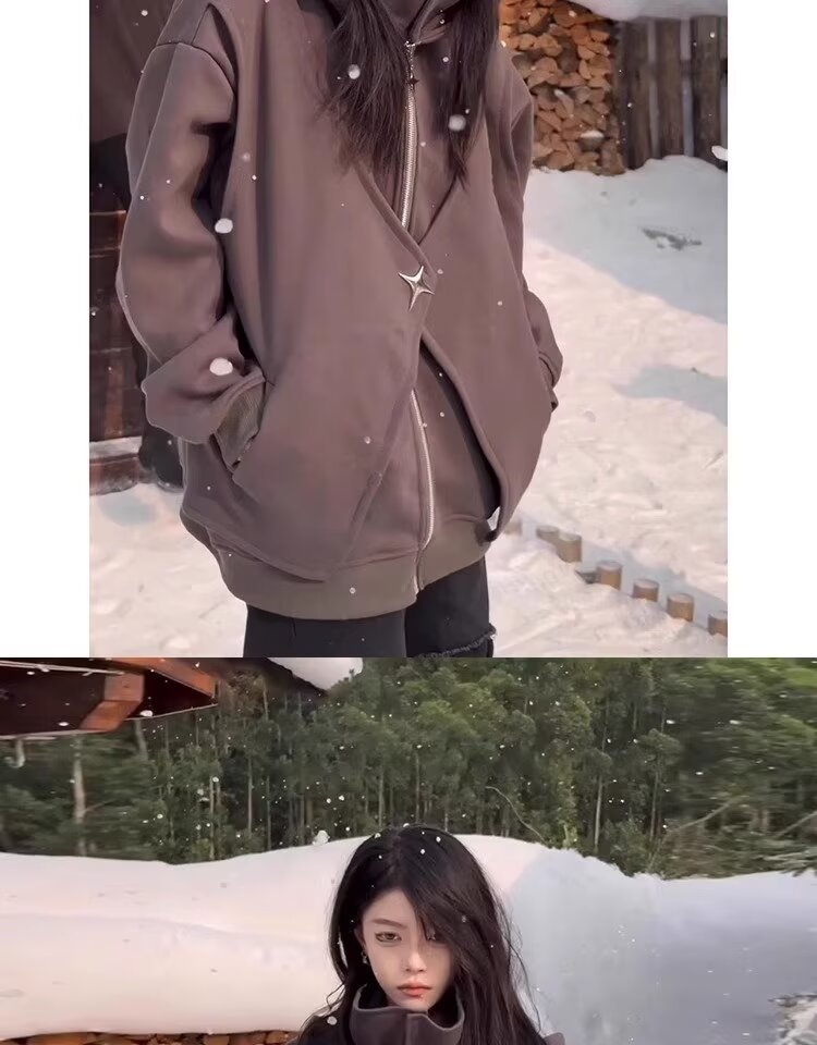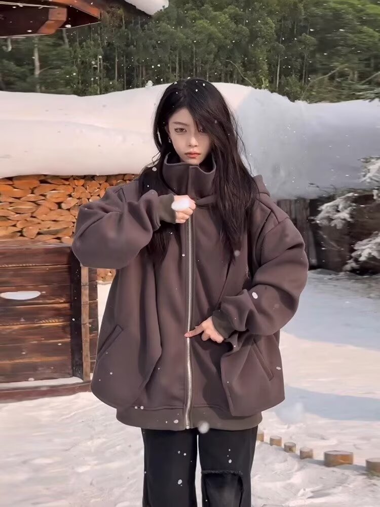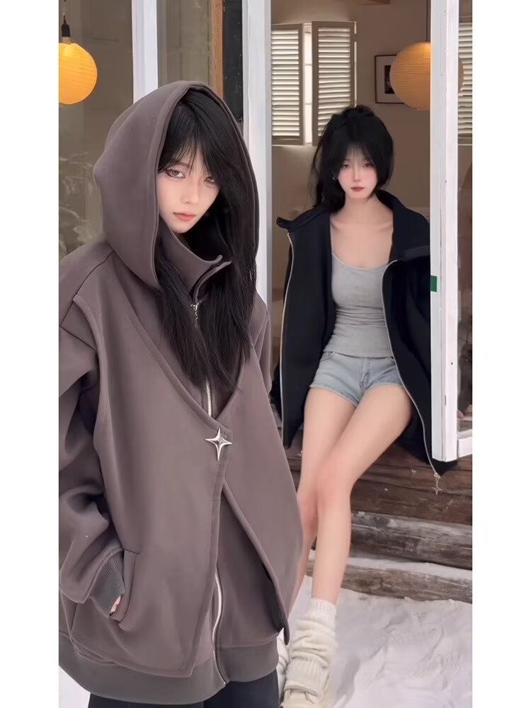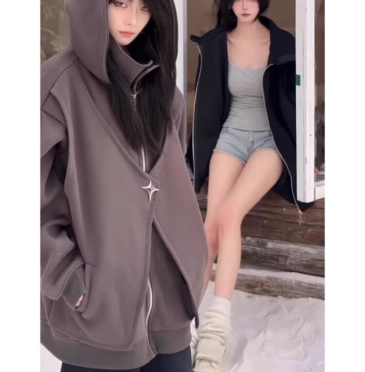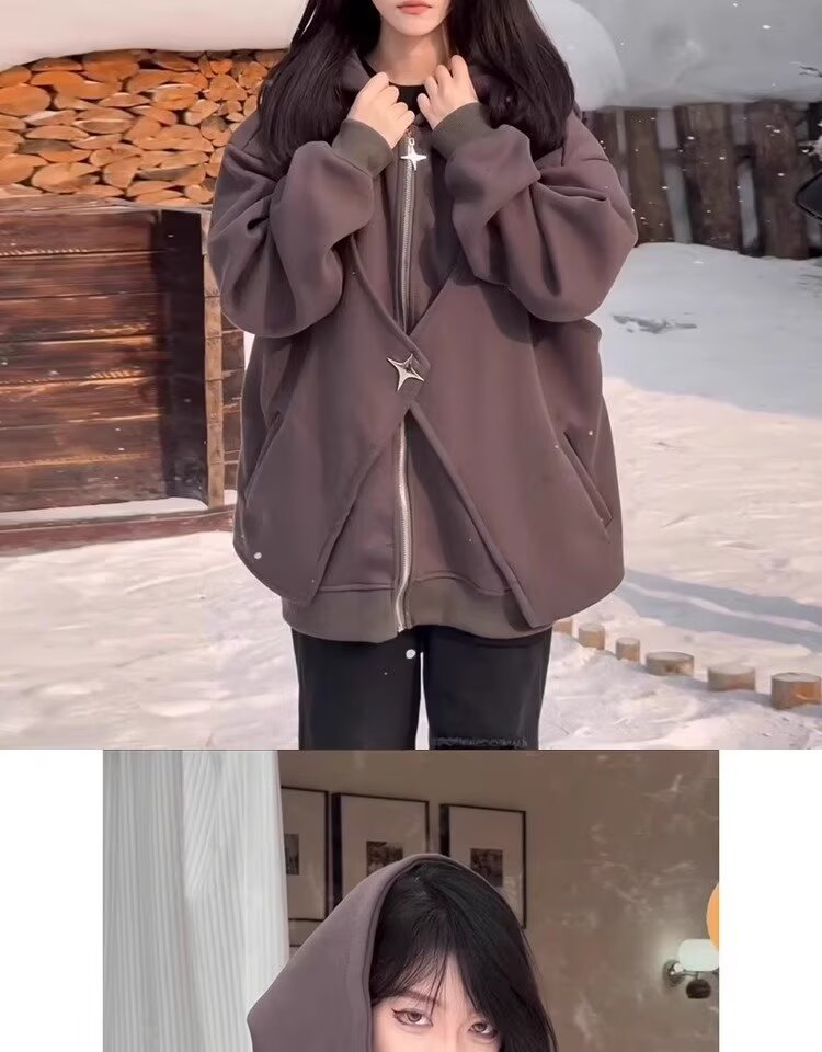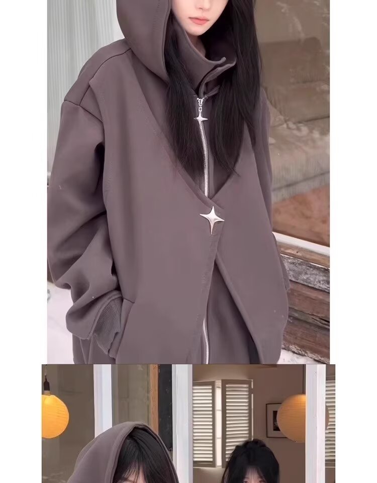아메리칸 스타일 스웨터 트렌디 한 카디건 스웨터 남자 가을과 겨울 높은 칼라 가짜 두 헤비 하이 스트리트 커플 후드 재킷스토어 가기