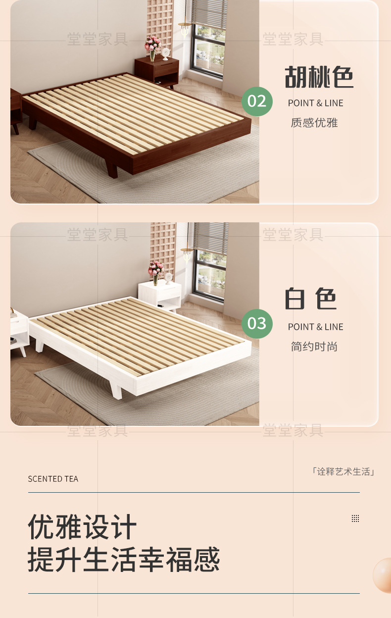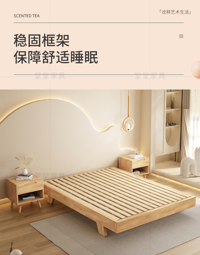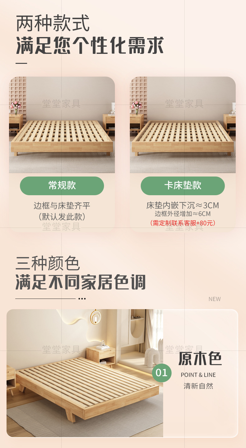 침대 옆 단단한 나무 침대 프레임 현대 간단한 다다미 침대 비 등받이 줄 골격 홈스테이 낮은 침대 크기의 마스터 침실스토어 가기