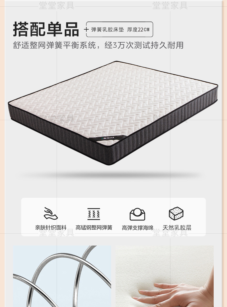 • 싱글 침대 + 침대 옆 탁자 1개 + 22CM 스프링 라텍스 매트리스