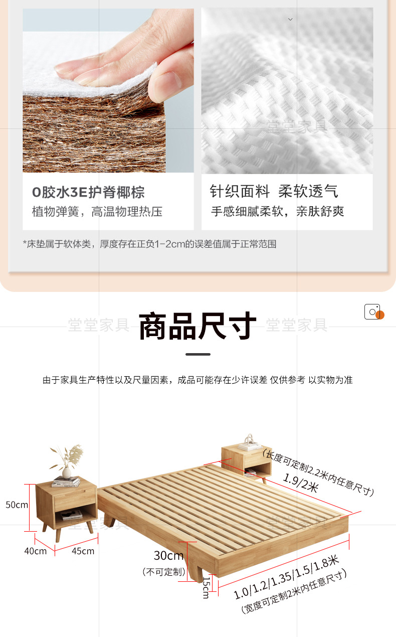 • 싱글 침대 + 침대 옆 탁자 1개 + 10CM 코코넛 야자 매트리스