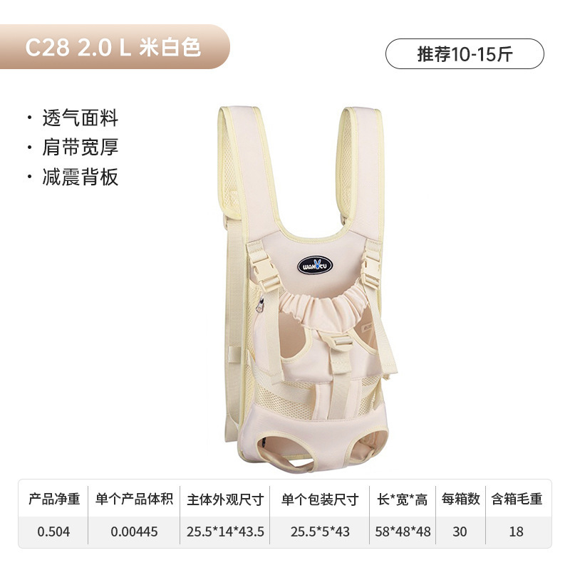 • 2.0 스몰 베이지 [ 1.0-2.5kg ] 이내 [체 길이/체형 조절 가능 + 탈출 방지 안전 버클 + 평생 보증]