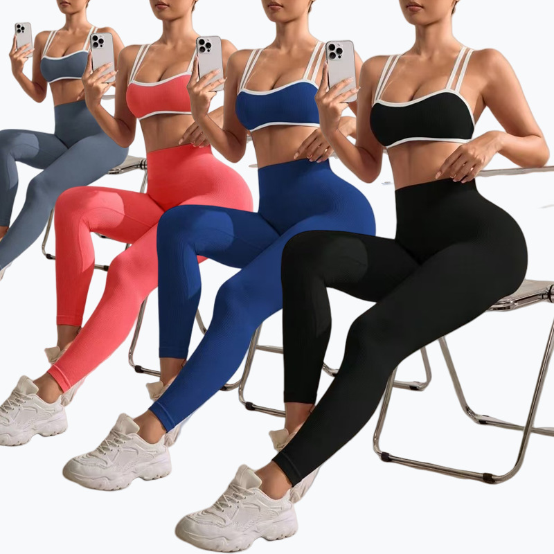 유럽과 미국의 국경 간 원활한 요가 세트 브라 복숭아 엉덩이 바지 스포츠 세트 야외 피트니스 착용