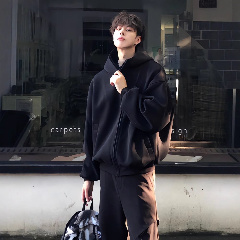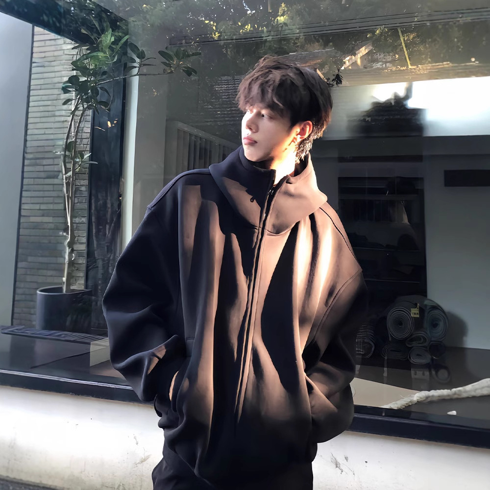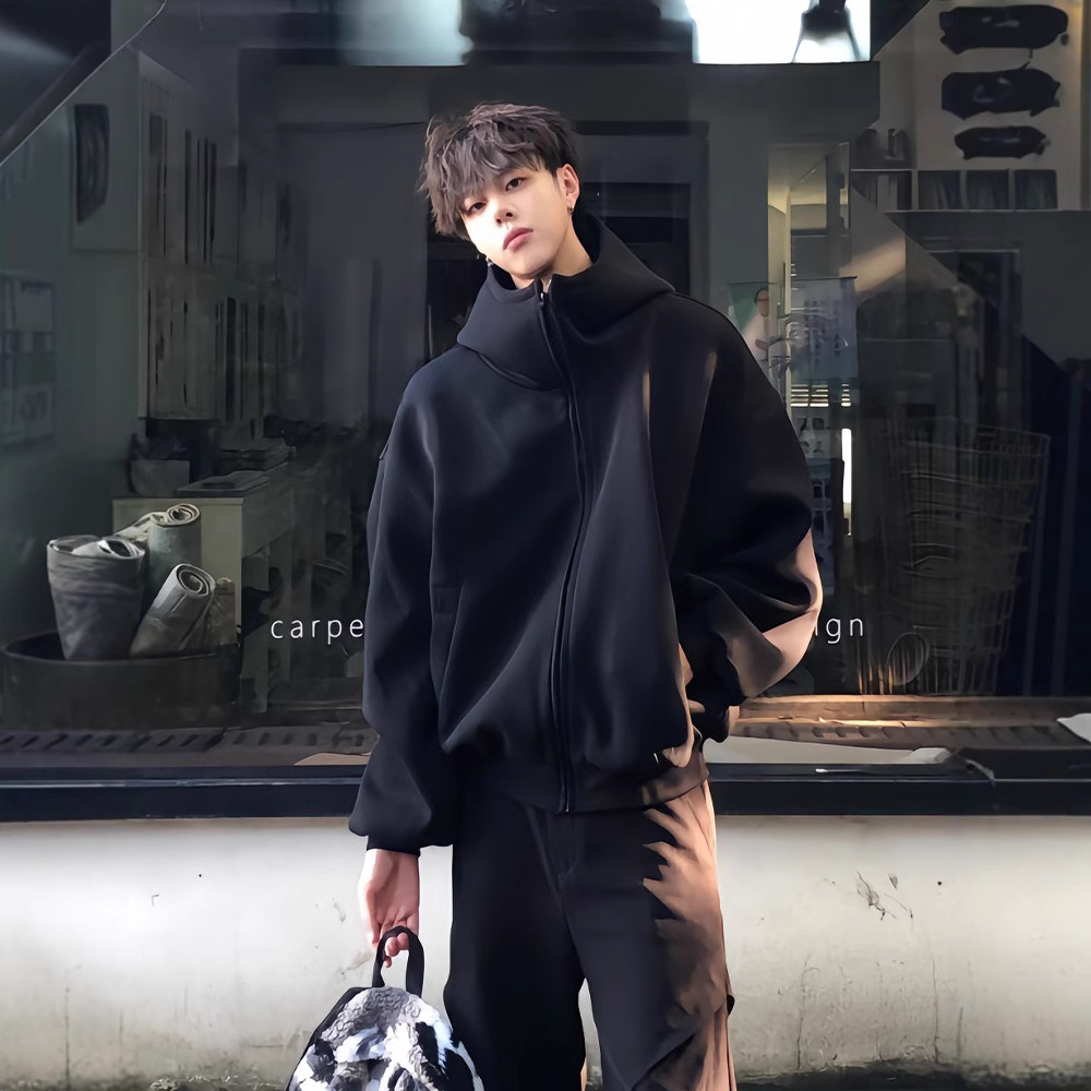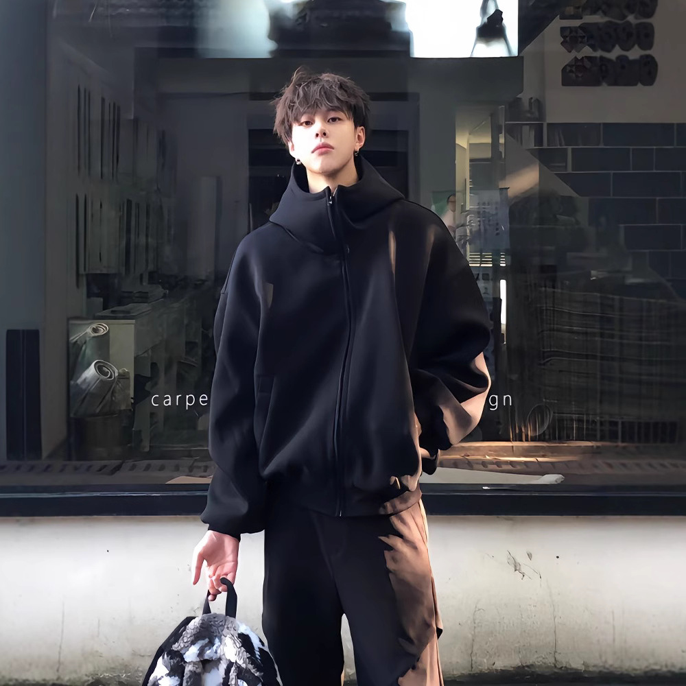 남성과 여성을위한 하이 퀄리티 블랙 후드 카디건 스웨터 가을 미국 무거운 유행 브랜드 캐주얼 더피 슈아이 하이 스트리트 재킷스토어 가기