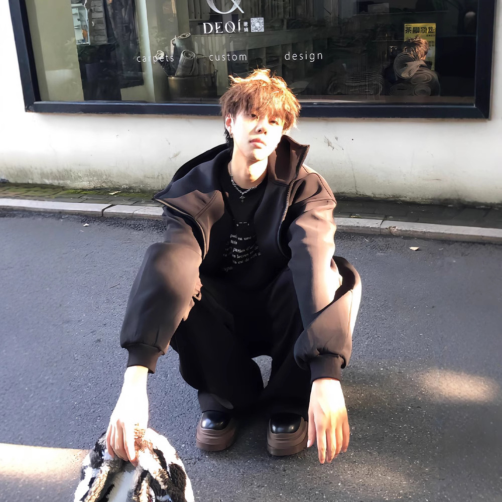 남성과 여성을위한 하이 퀄리티 블랙 후드 카디건 스웨터 가을 미국 무거운 유행 브랜드 캐주얼 더피 슈아이 하이 스트리트 재킷