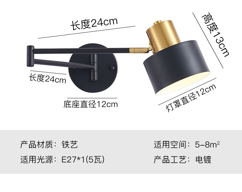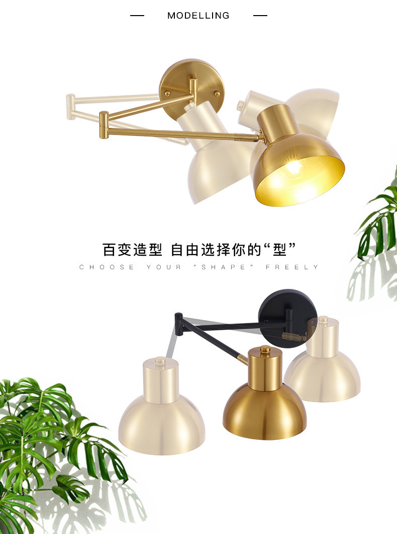 현대 간단한 더블 섹션 로커 벽 램프 침실 침실 연구 LED 벽 램프 호텔 복도 조정 접는 램프