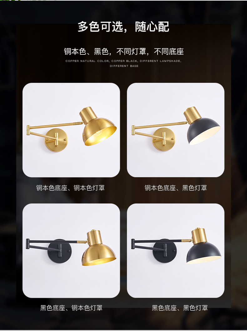현대 간단한 더블 섹션 로커 벽 램프 침실 침실 연구 LED 벽 램프 호텔 복도 조정 접는 램프스토어 가기