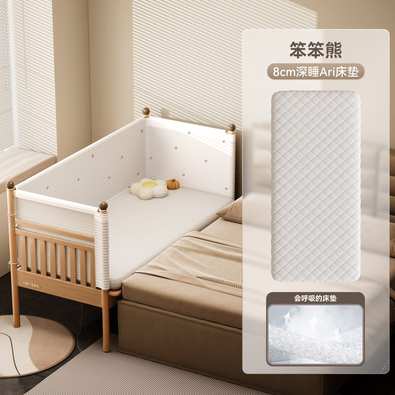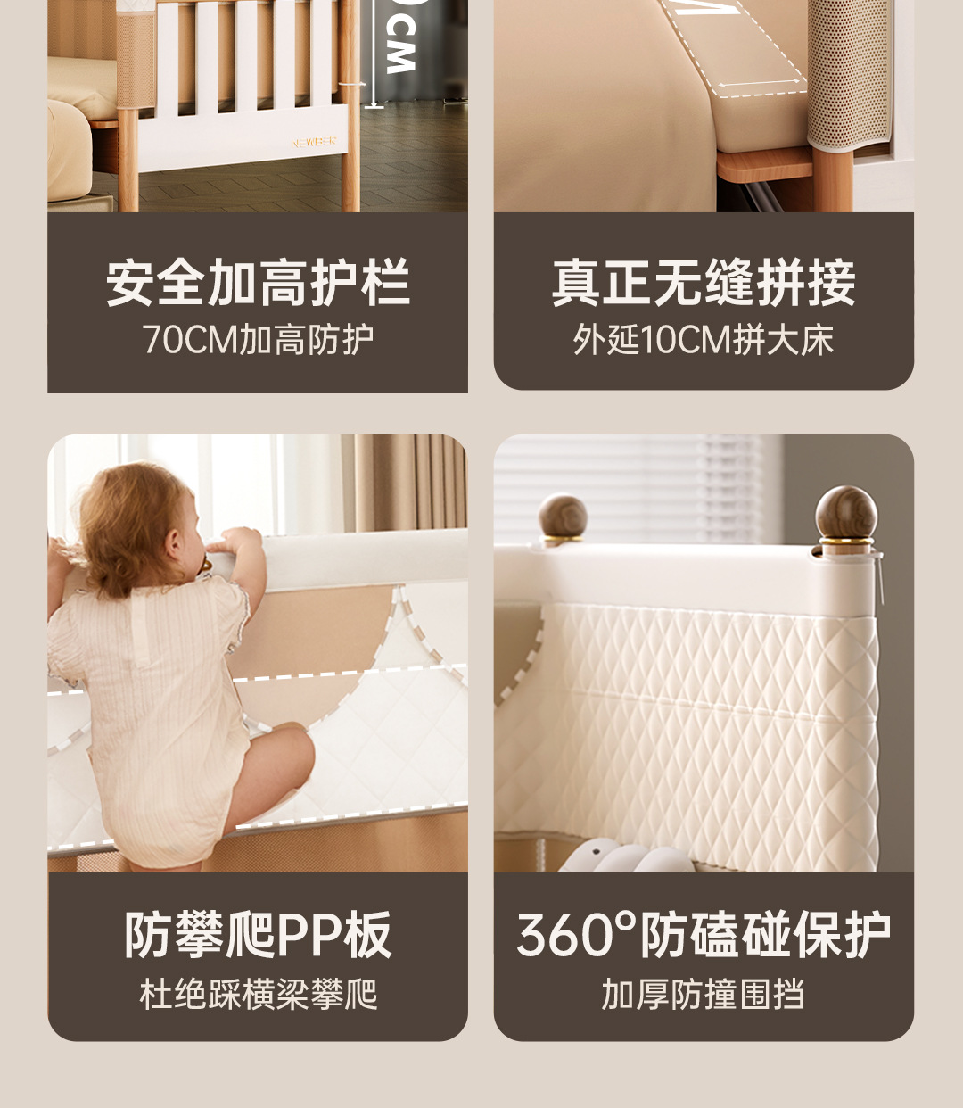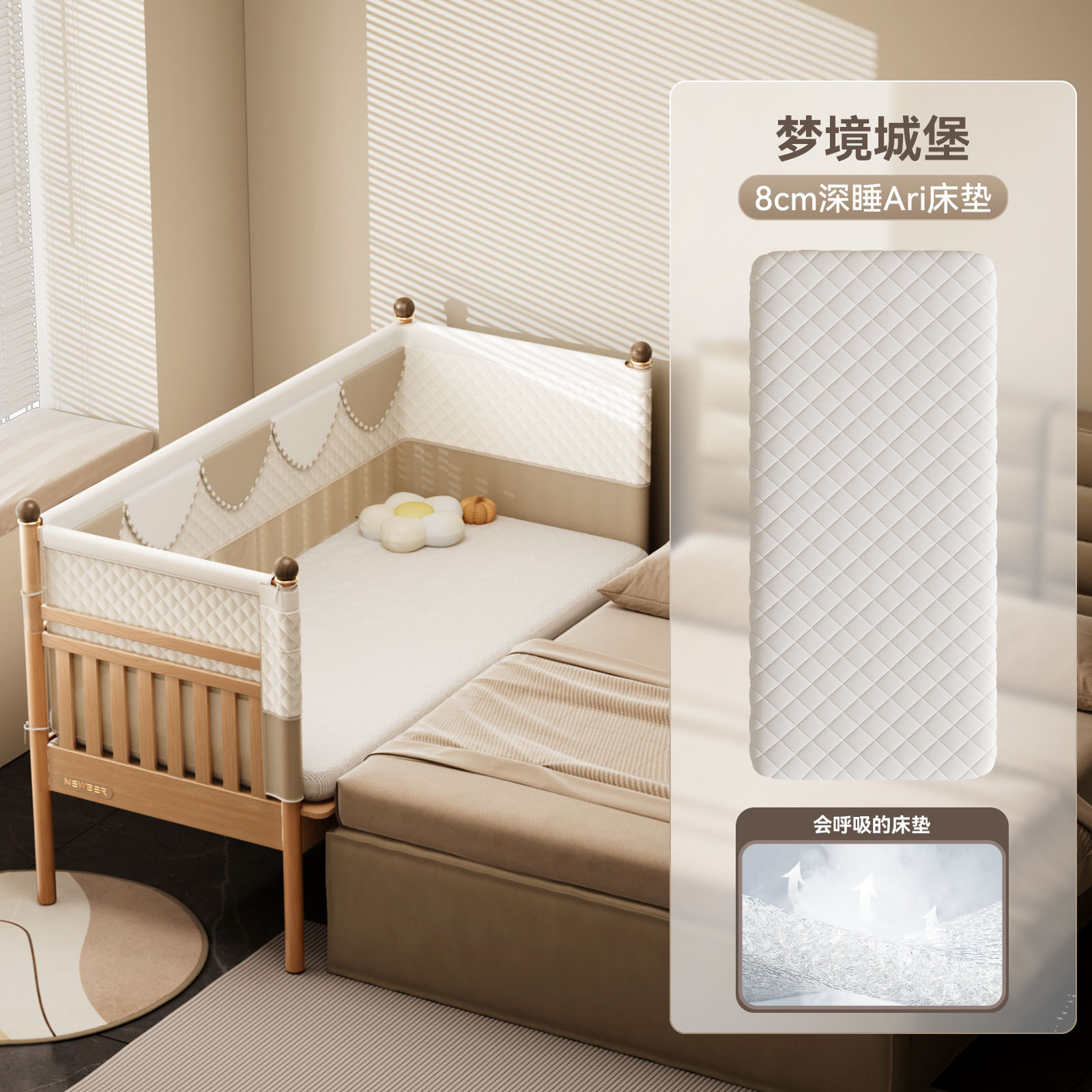 Newber Newbell Baby Splice Bed Children 확장 된 침대 확장 신생아 아기 리프팅 및 성인을위한 수면