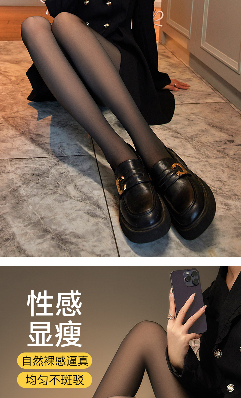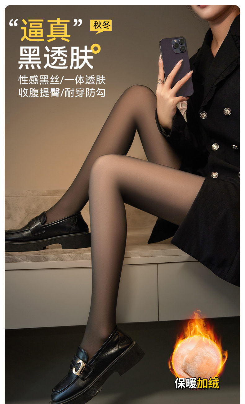 검은 피부 투명 레깅스 여성의 가을과 겨울 기모 검은 실크 라이트 레그 아티팩트 높은 허리 엉덩이 리프팅 두꺼운 따뜻한 원피스 팬티 스타킹