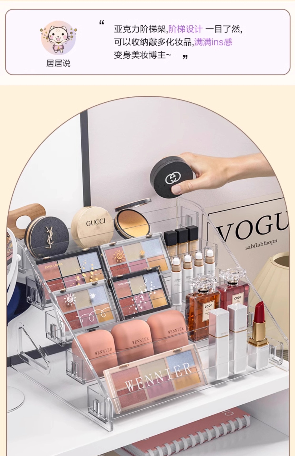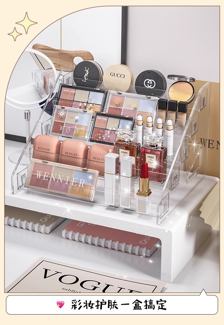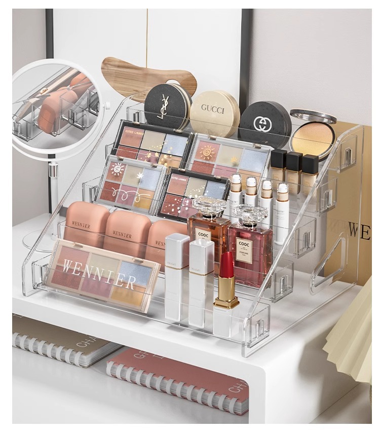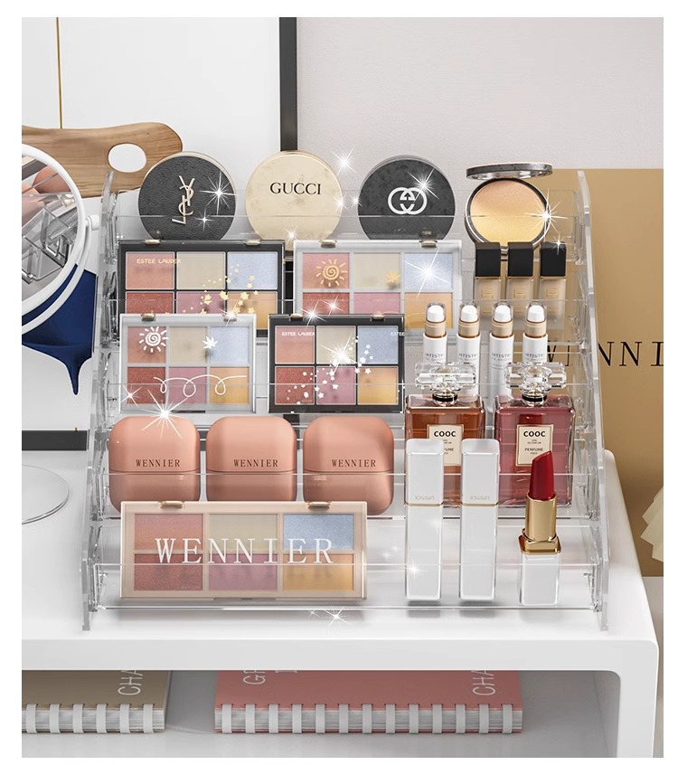투명 스토리지 박스 다층 화장품 스토리지 랙 네일 폴란드 아이 섀도우 플레이트 디스플레이 랙 드레싱 테이블 마감 선반