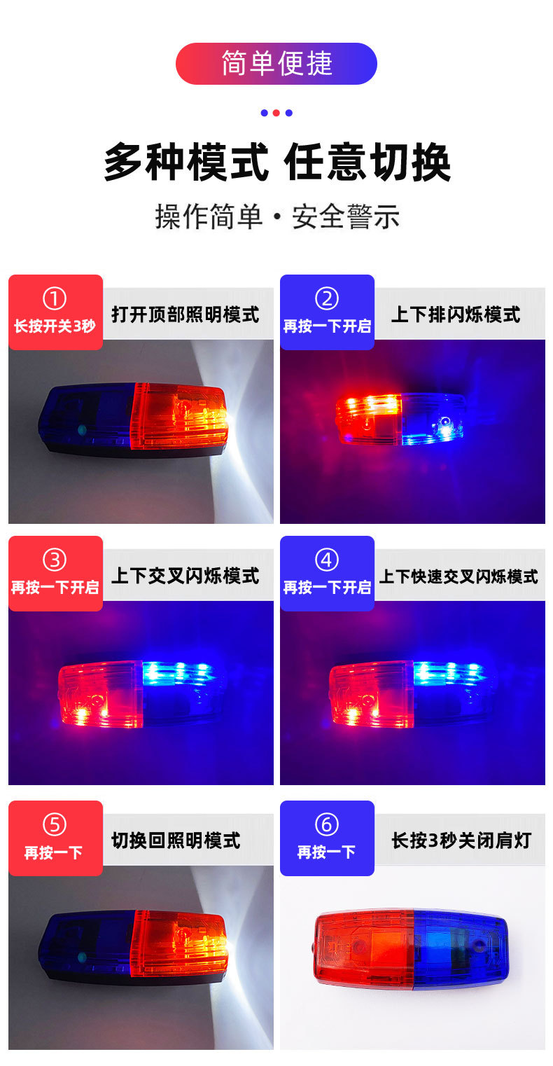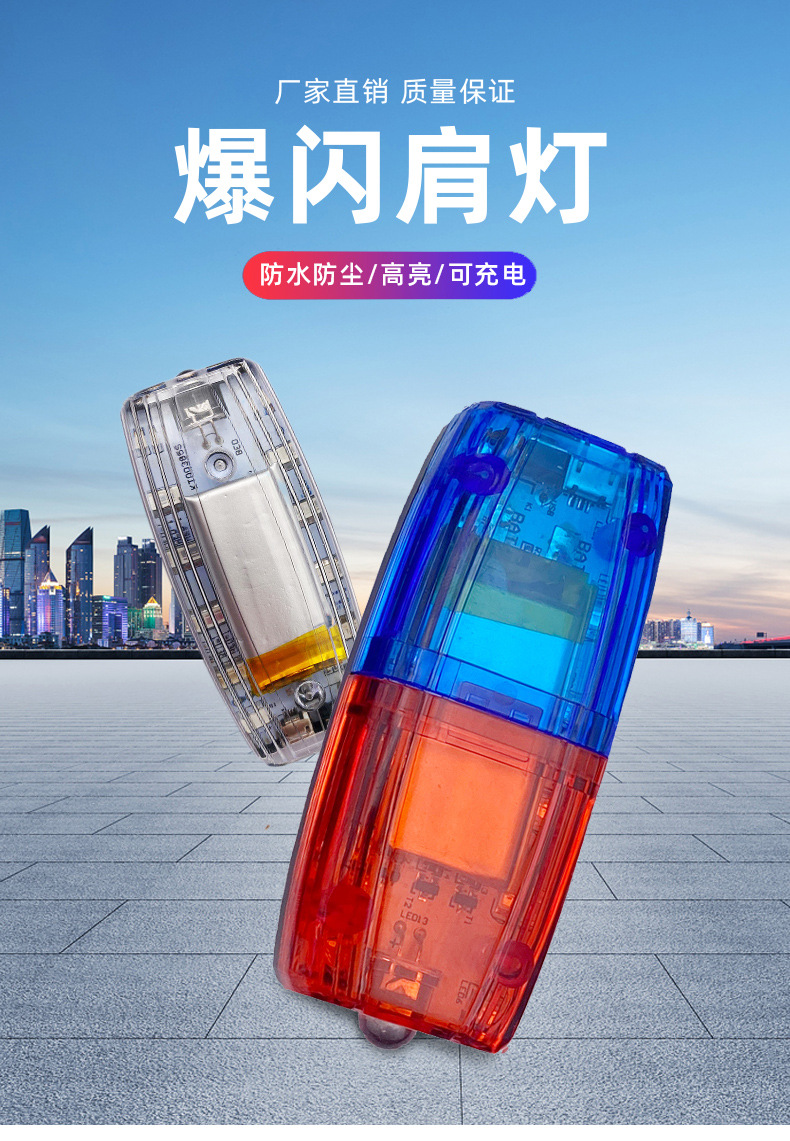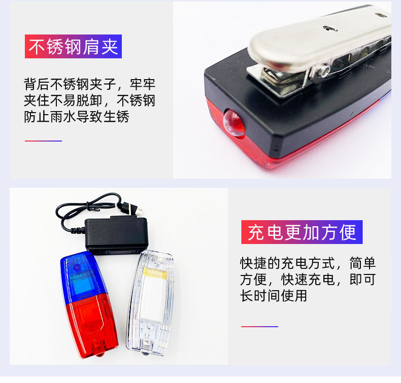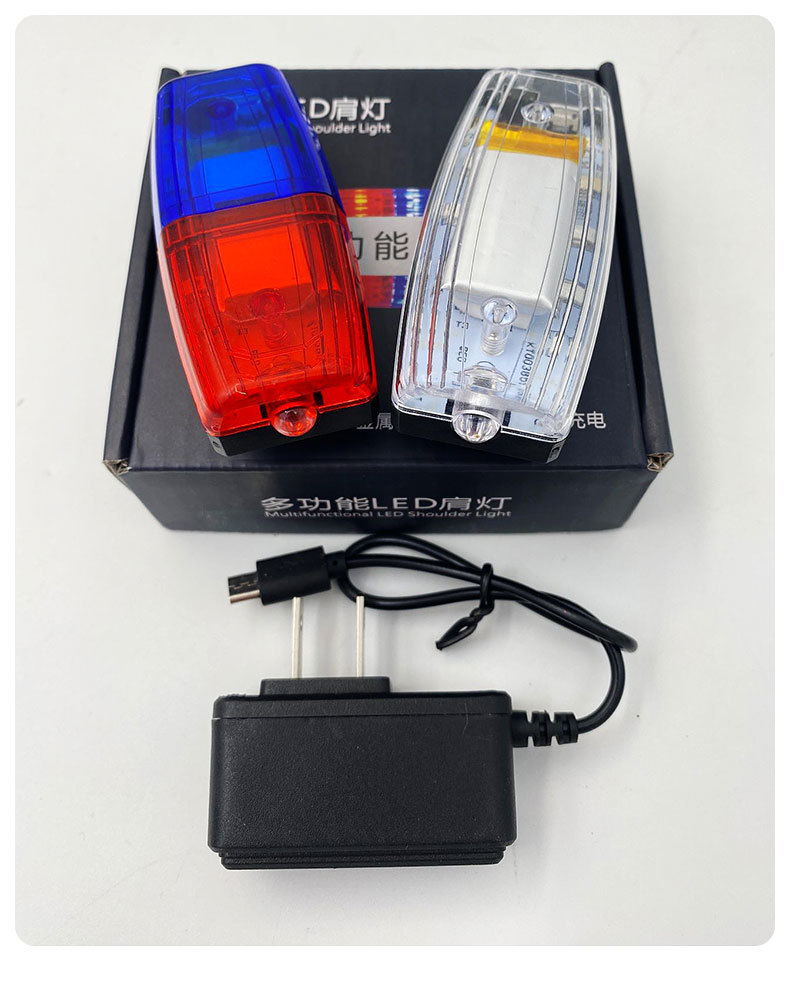 다기능 충전식 LED 빨간색과 파란색 깜박이는 어깨 램프 근무 안전 재산 위생 보안 신호 경고 플래시