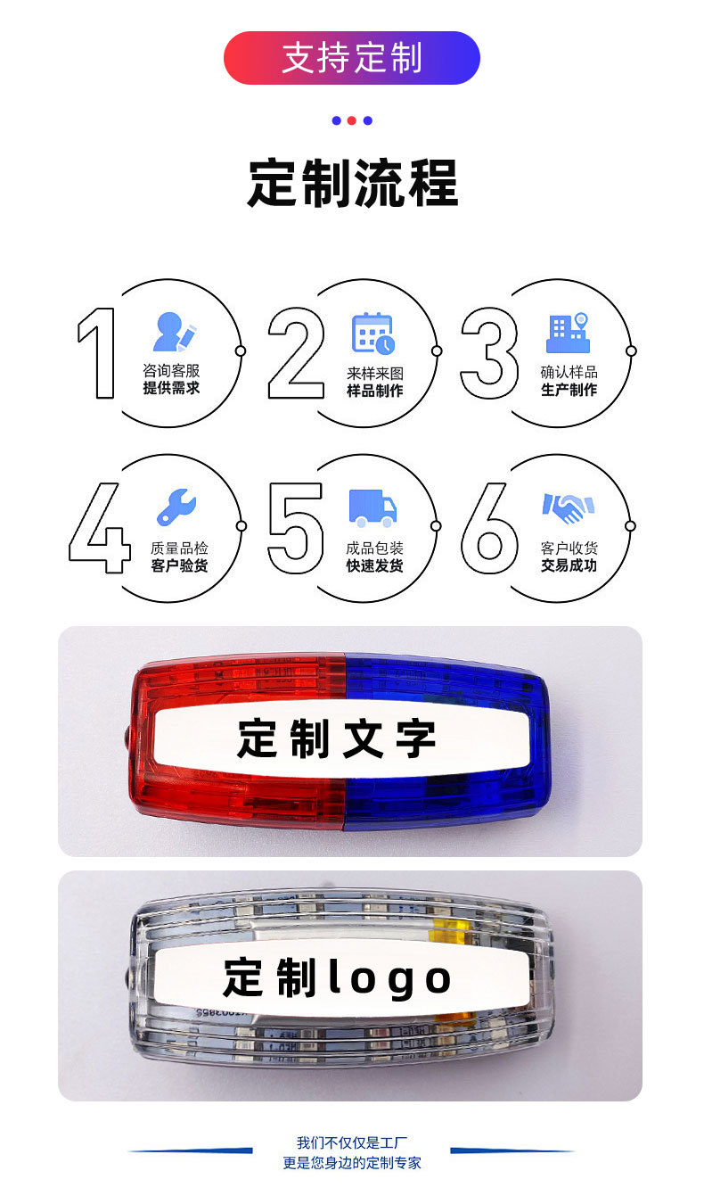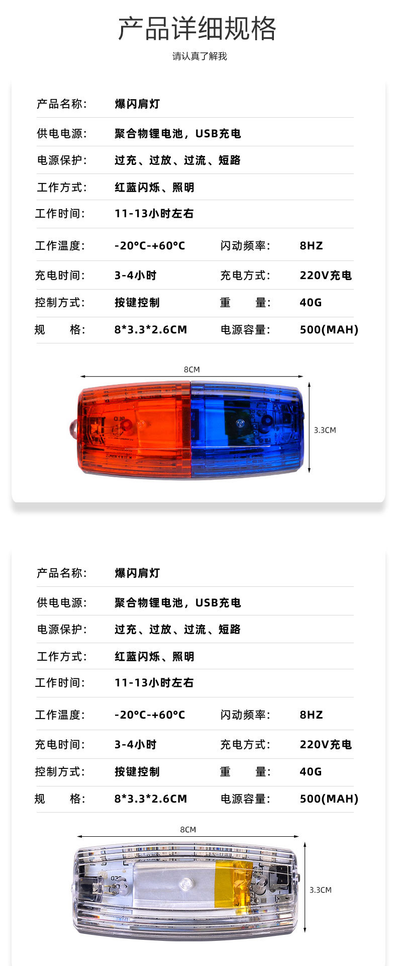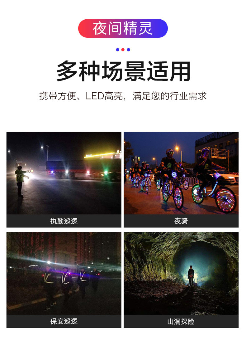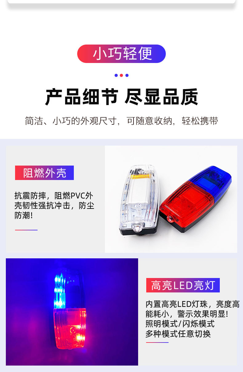 다기능 충전식 LED 빨간색과 파란색 깜박이는 어깨 램프 근무 안전 재산 위생 보안 신호 경고 플래시