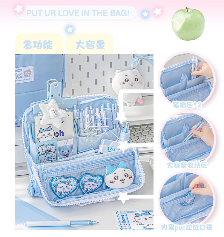 RosyPosy 소프트 Adorn 장식 휴대용 연필 케이스 다기능 보관 학생 대용량 문구 가방스토어 가기