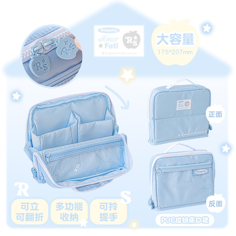 RosyPosy 소프트 Adorn 장식 휴대용 연필 케이스 다기능 보관 학생 대용량 문구 가방