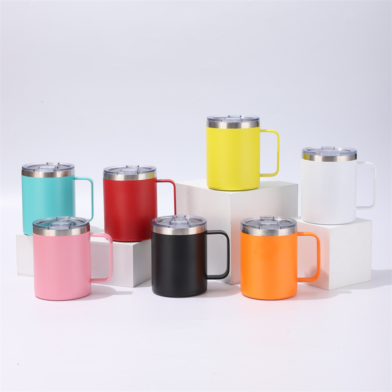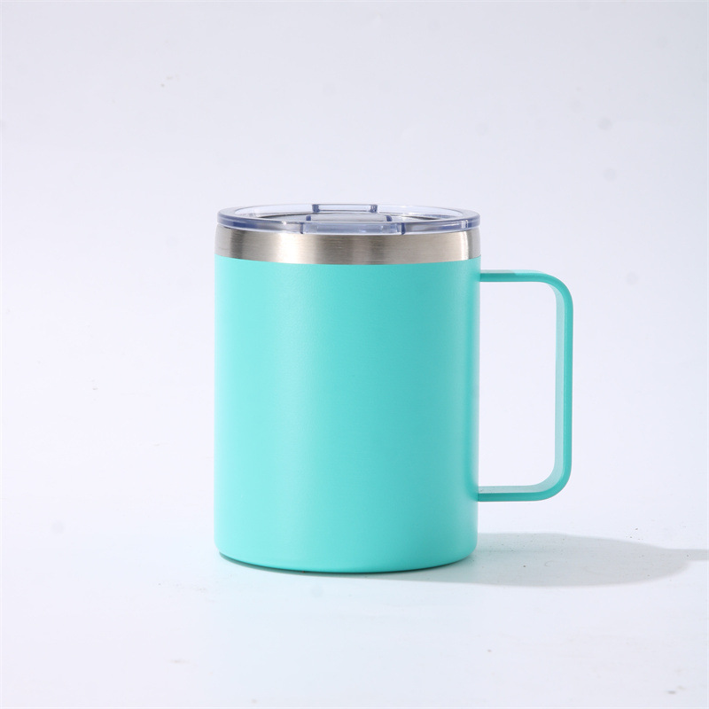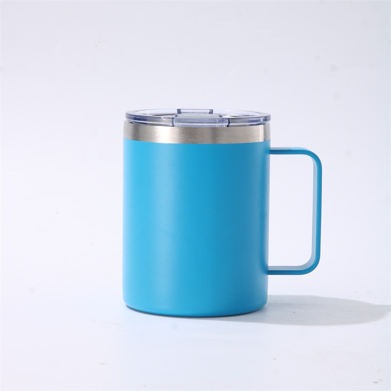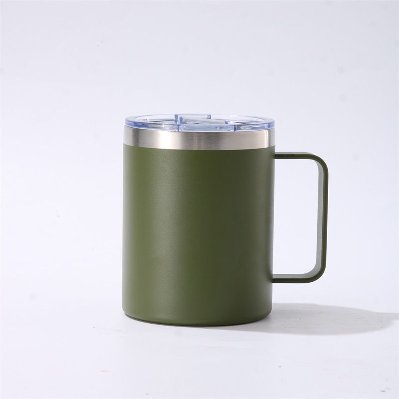 크로스보더 스테인리스 이중 스프레이 단열컵 12oz 손잡이컵 304 스테인리스 커피컵 사무실컵
