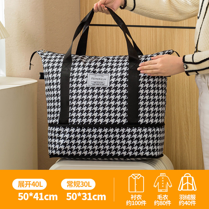 여행 가방 대용량 접히는 Houndstooth 요가 가방 격자 무늬 여행 어깨 가방 경량 건조 및 젖은 별도의 체육관 가방스토어 가기
