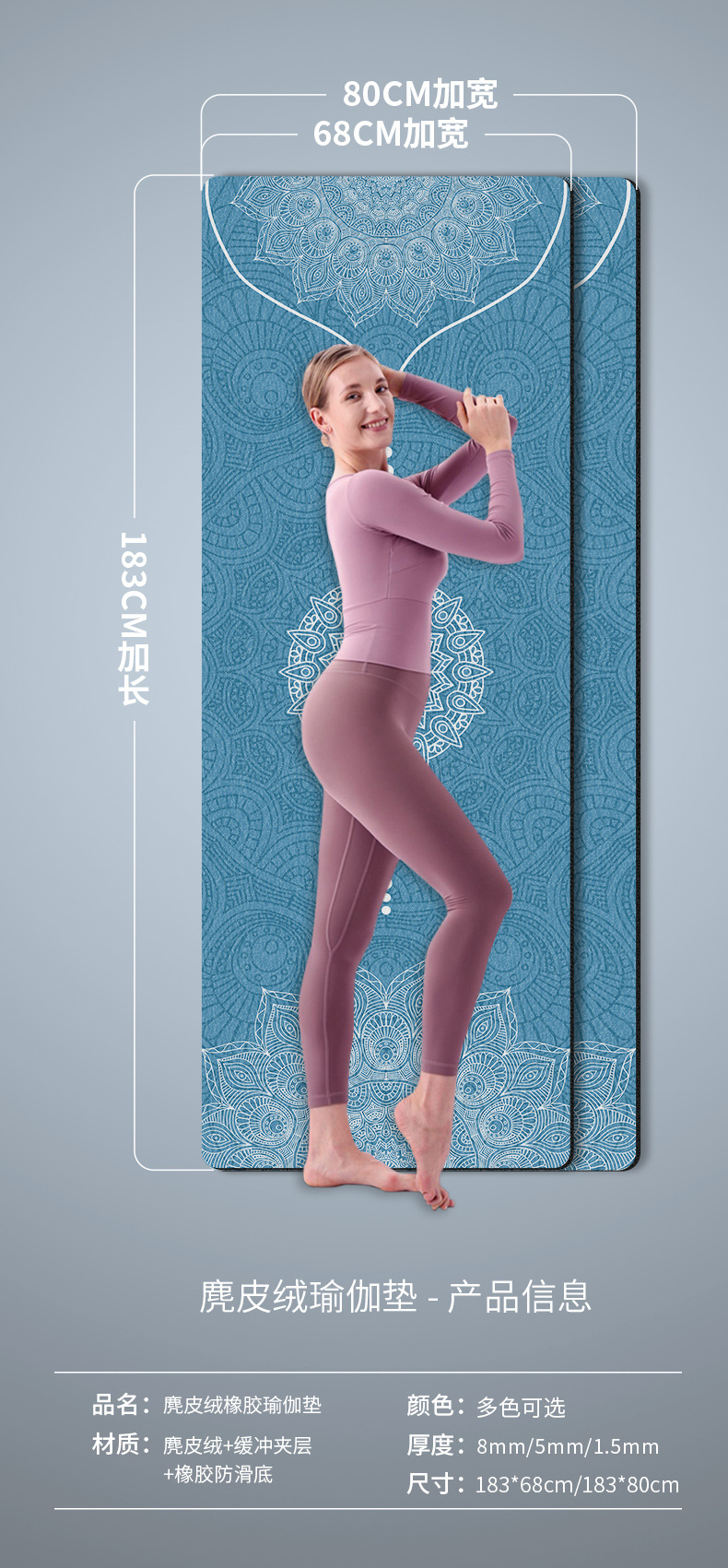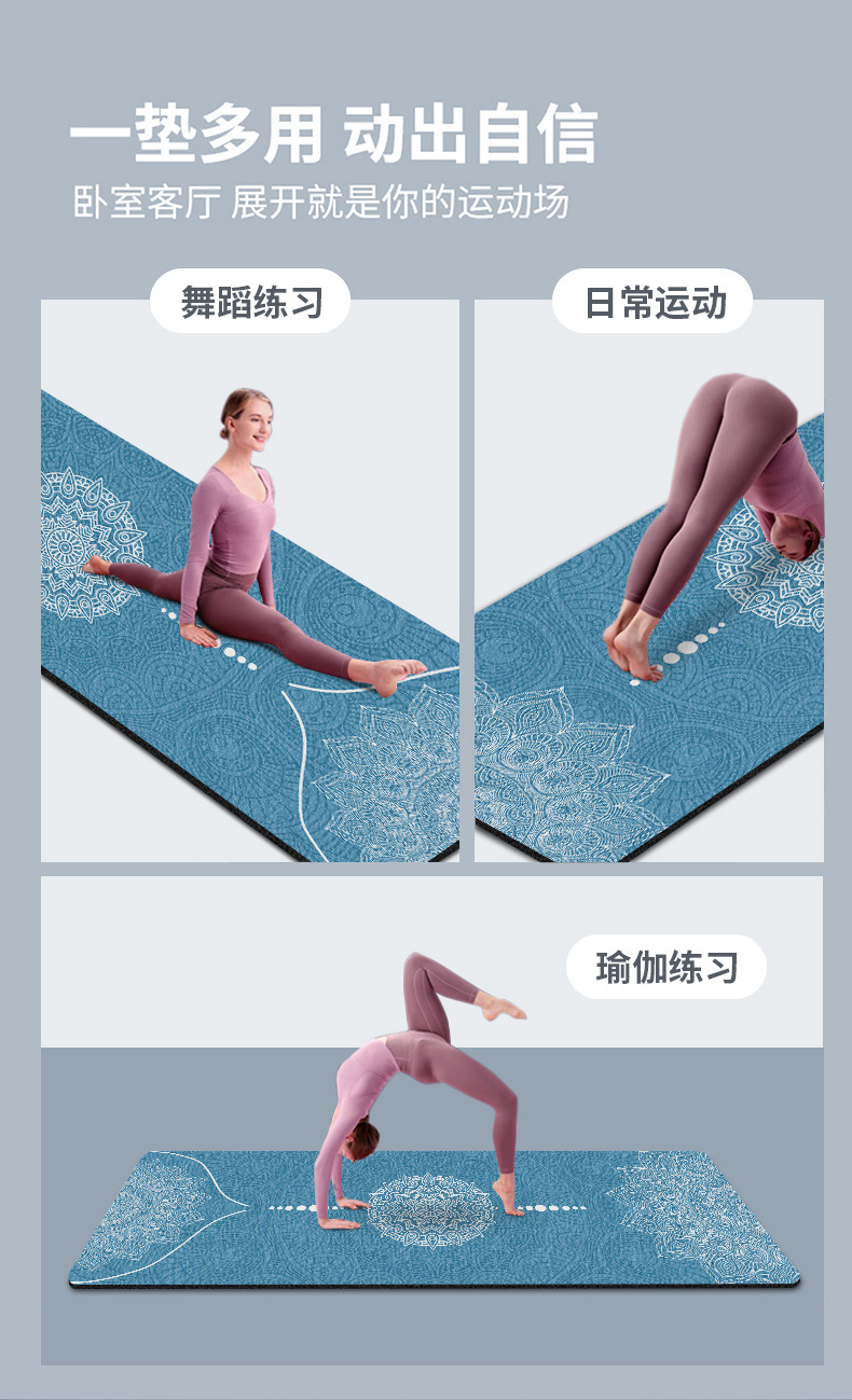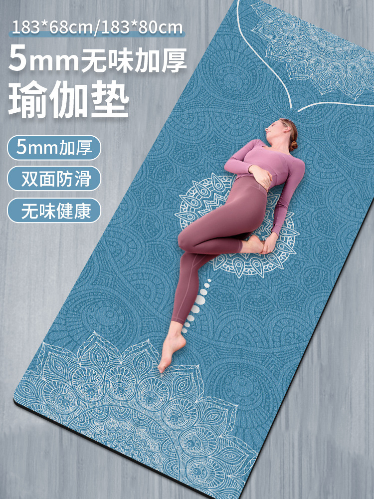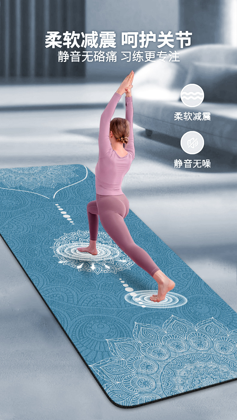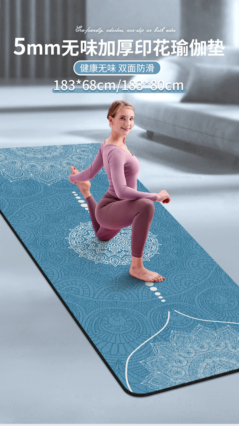 두껍고 맛없는 8mm 스웨이드 고무 인쇄 요가 매트 높은 리바운드 소프트 충격 흡수 피트니스 매트 플로어 매트 미끄럼 방지